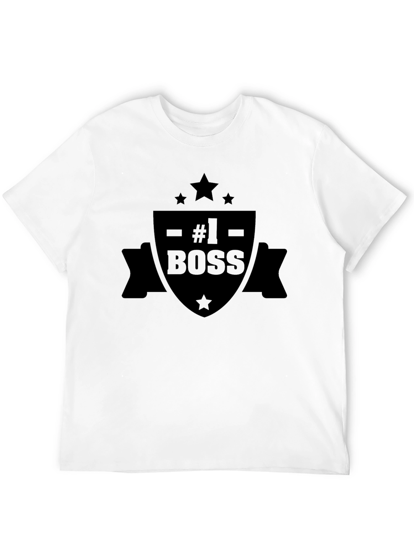 Show everyone who's in charge with this stylish black t-shirt. The shirt features a bold design with '#1 Boss' inside a shield shape, complete with decorative stars and ribbons. Made from a comfortable and durable material, this t-shirt is perfect for casual wear. Ideal for the office, casual hangouts, or as a fun gift for your favorite boss. Make a statement and display your status with this awesome #1 Boss tee. Get yours today and embrace your inner leader!