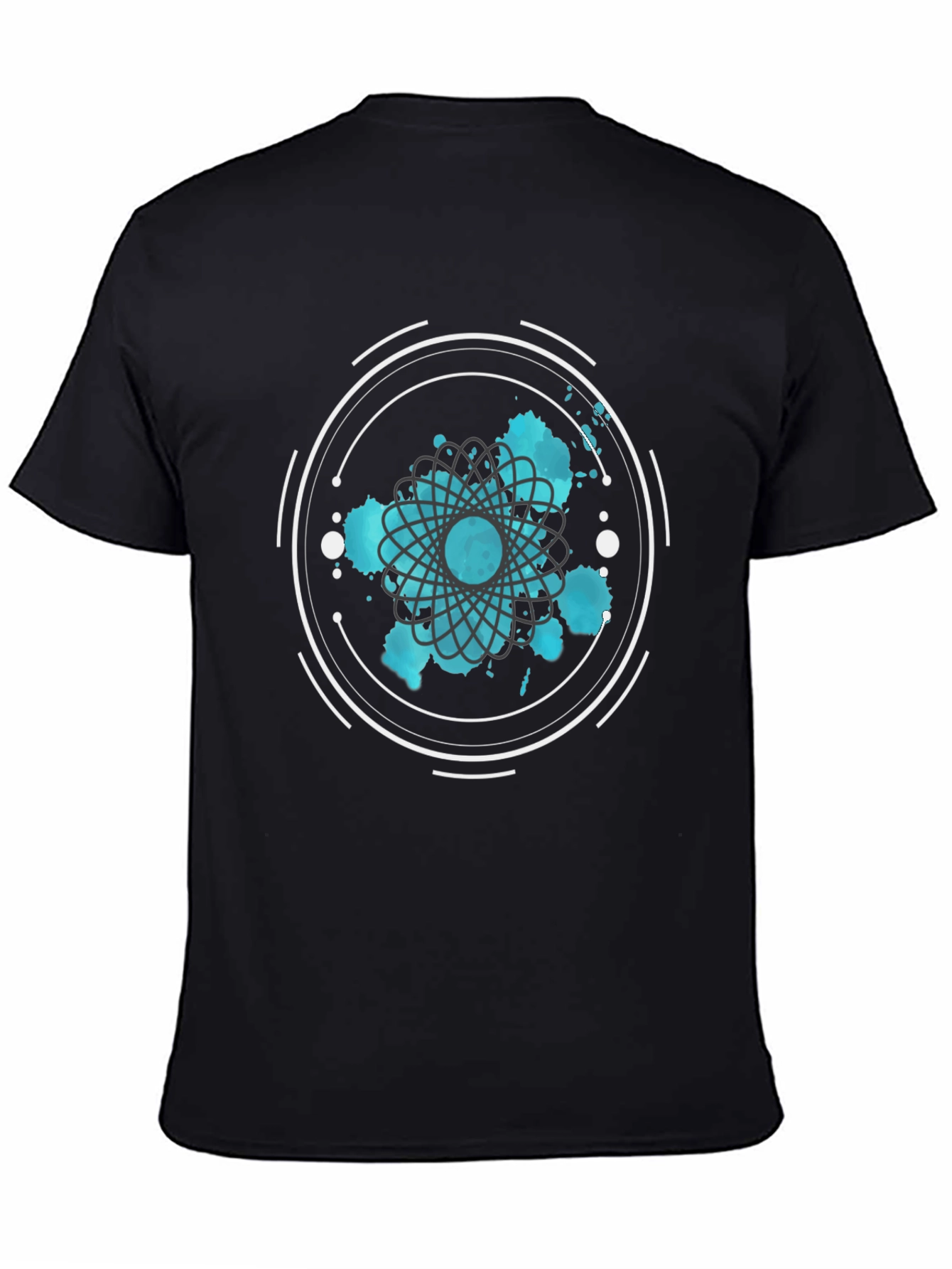 Make a bold statement with this stylish black graphic tee. The design features an eye-catching abstract pattern in vibrant teal, set within a modern circle graphic. The tee appears to be made of a comfortable material, perfect for casual wear. Its unique design and color make it a standout piece. It is ideal for those who appreciate modern art and want to express their individual style. Pair it with your favorite jeans or shorts for a cool, relaxed look. Express your individuality with this tee!