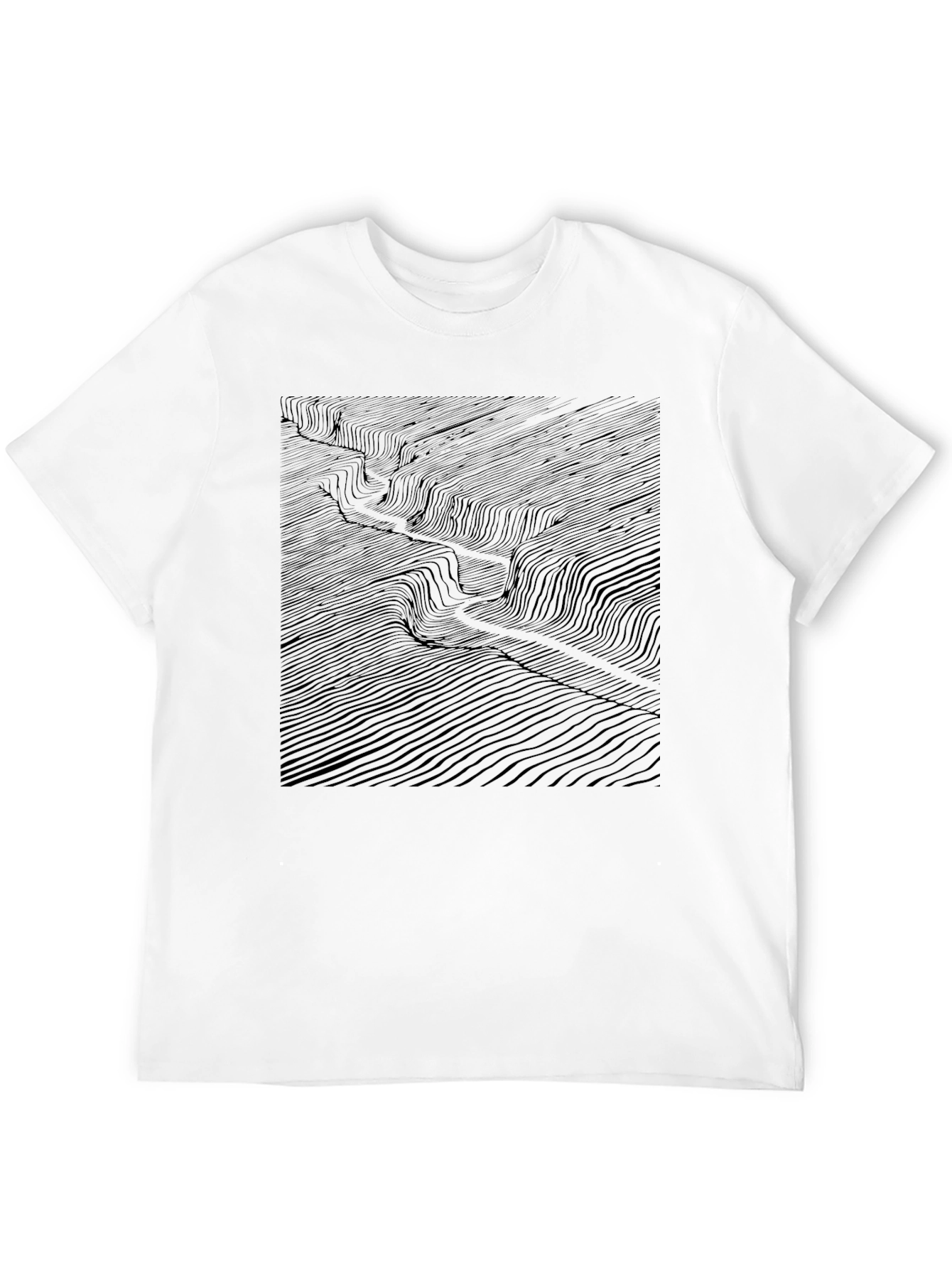 Showcase a modern aesthetic with this unique black t-shirt featuring an abstract topographic design. The intricate lines create a visually striking pattern, adding depth and dimension to your look. Made from a soft and comfortable fabric, this shirt is perfect for everyday wear. Dress it up with a jacket or keep it casual with jeans. A versatile addition to any wardrobe, this t-shirt blends artistry and comfort effortlessly. Ideal for those who appreciate minimalist yet eye-catching designs.