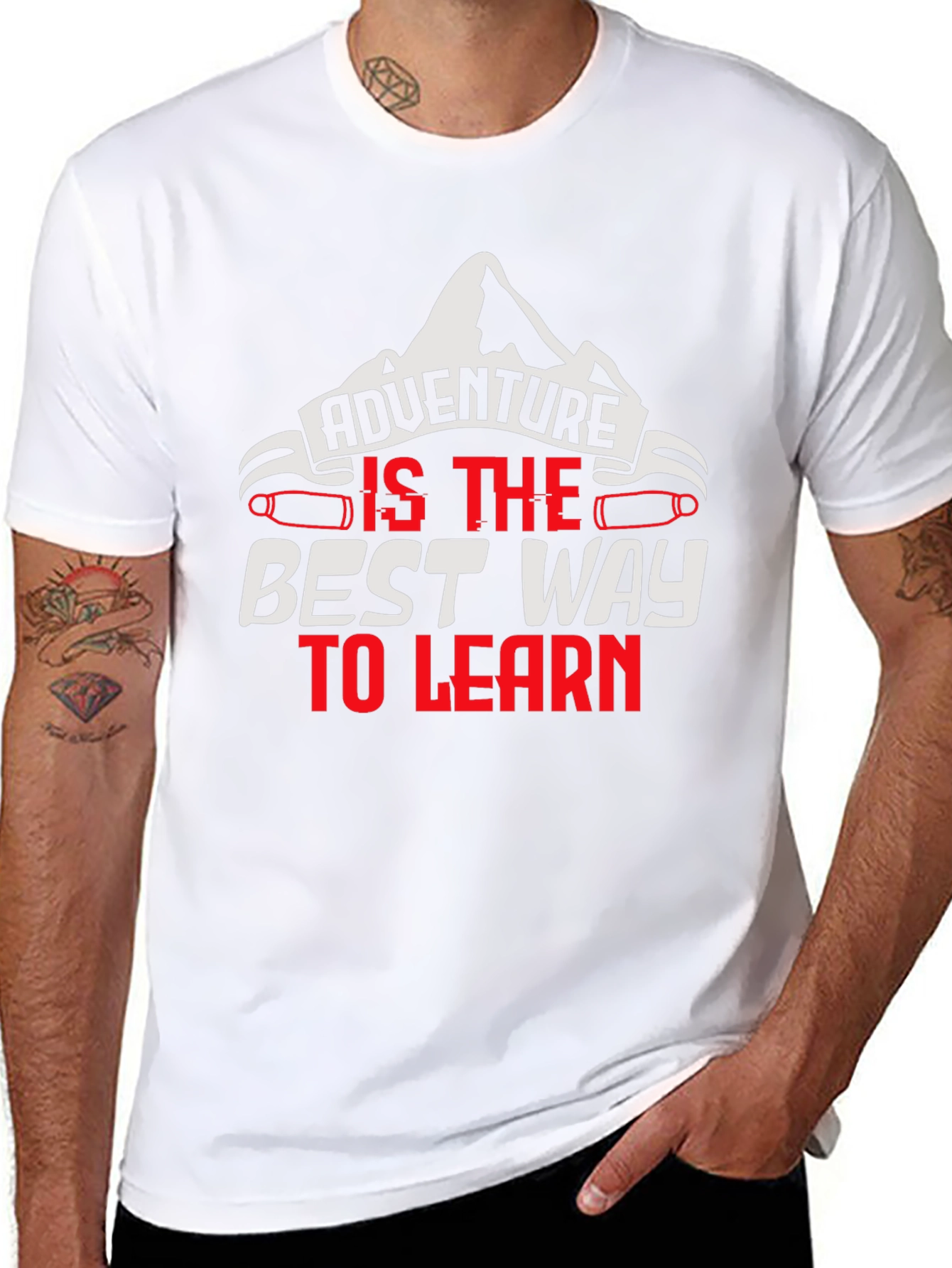 Embrace your adventurous spirit with this bold graphic tee! Featuring a striking mountain design above the words "Adventure Is The Best Way To Learn", this shirt is perfect for those who love exploring and value hands-on learning. The design is printed in white and red. Made from a soft, breathable fabric, this t-shirt offers both comfort and style. It's an excellent choice for casual outings, hiking trips, or simply expressing your unique perspective. Gear up for your next journey, and let this tee be a reminder that every adventure is an opportunity to learn and grow.