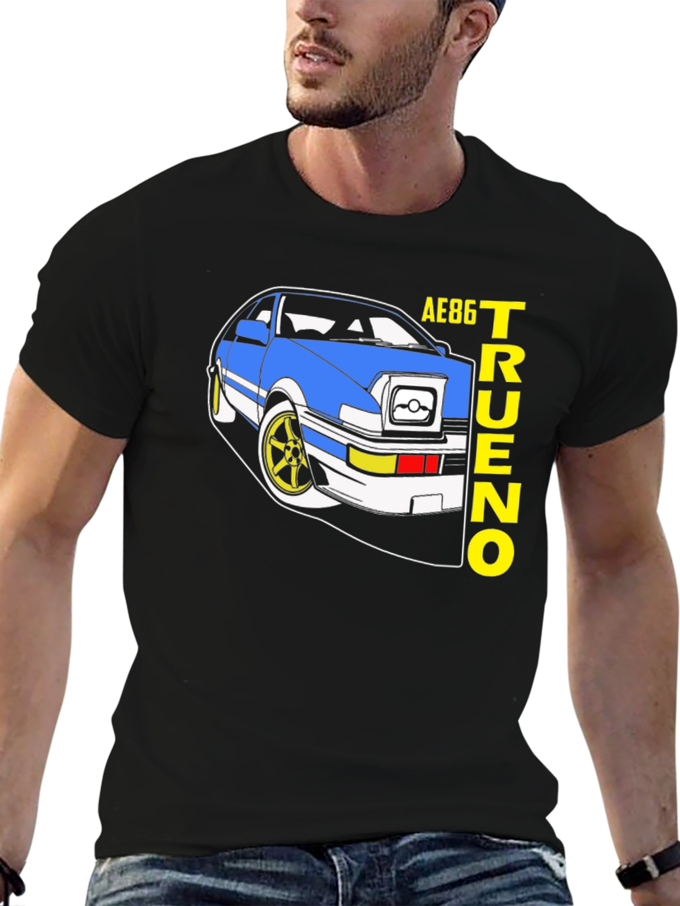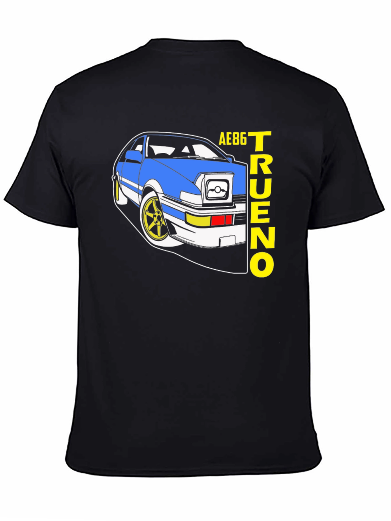 Show off your love for classic Japanese sports cars with this stylish AE86 Trueno T-shirt. This black tee features a vibrant graphic of the iconic blue and white AE86 Trueno. The design is eye-catching, highlighting the car's distinct pop-up headlights and sporty stance. The word "TRUENO" is printed boldly in yellow alongside the car, adding a retro touch. Made from a comfortable cotton blend, this shirt is perfect for everyday wear, car meets, or as a gift for JDM enthusiasts. Grab yours and make a statement!