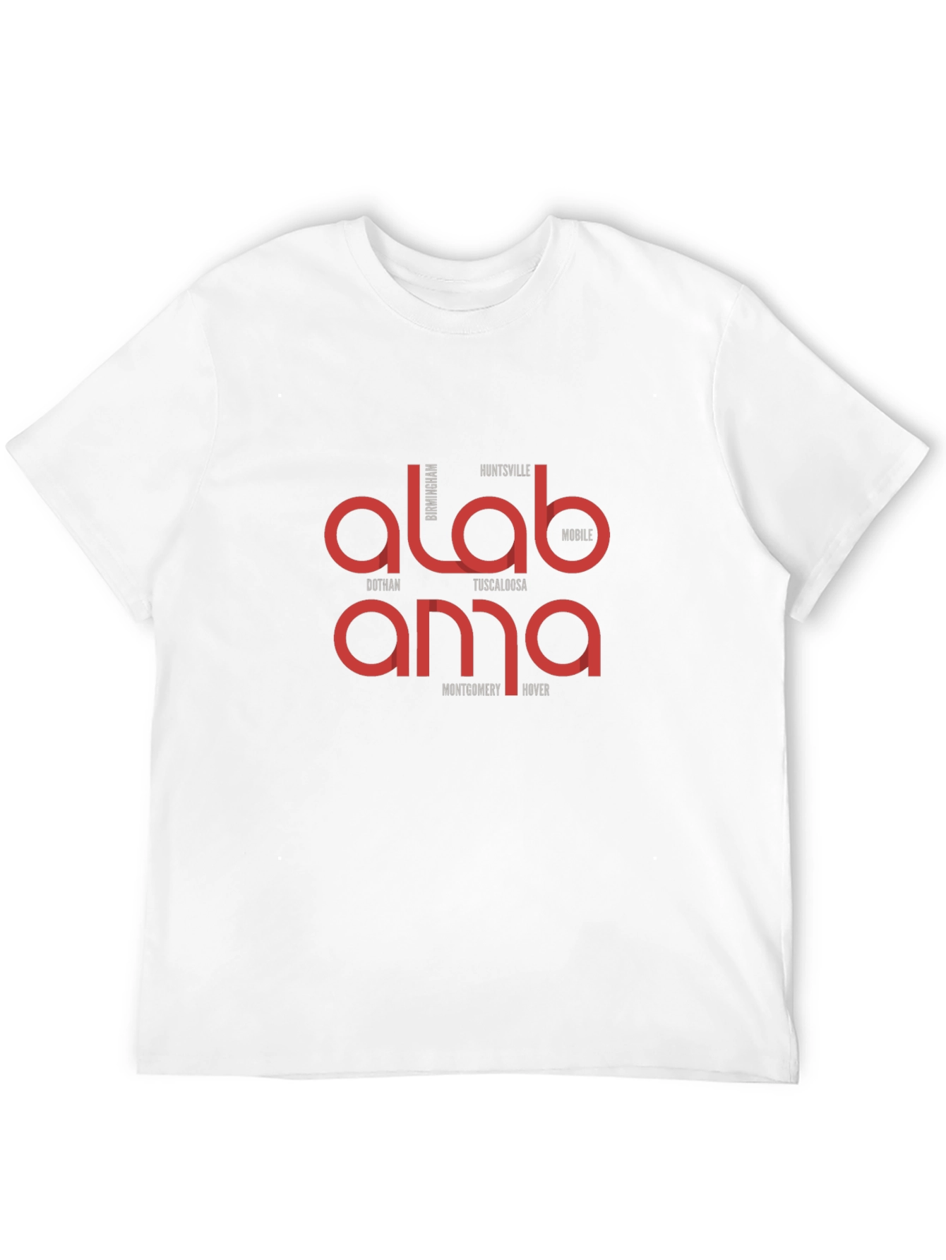 Show your state pride with this stylish black t-shirt. The shirt features a unique graphic design with the word "Alabama" spelled out in red, with the names of various Alabama cities incorporated into the letters. Made from a comfortable, breathable fabric, this tee is perfect for everyday wear. The classic crew neck and short sleeves offer a relaxed fit. Whether you're a resident, a fan, or just love the design, this Alabama t-shirt is a great way to show your love for the state. Ideal for casual outings, sporting events, or just lounging around, this shirt combines comfort and style.