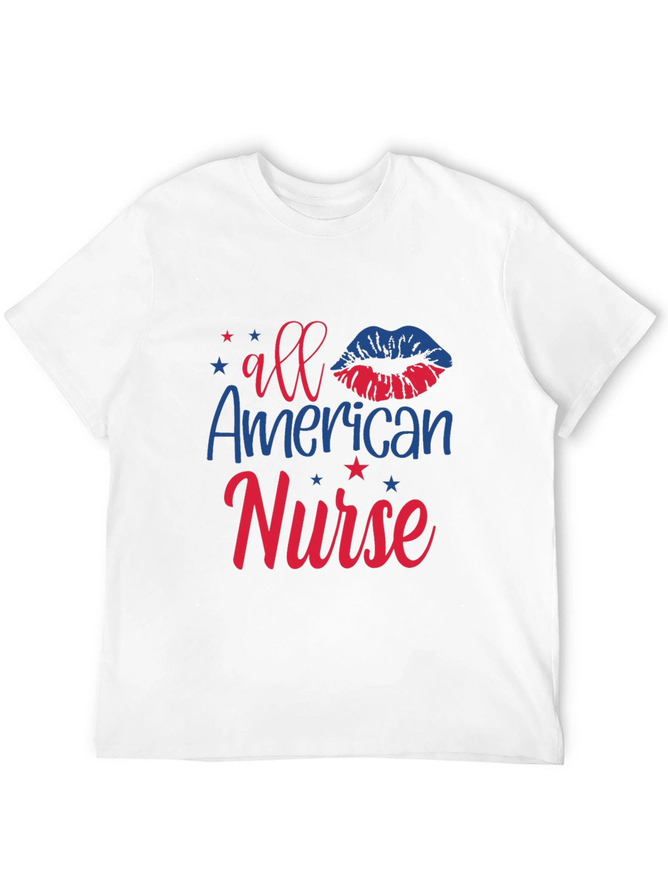 Show your American pride with this patriotic All American Nurse t-shirt. The design features a bold graphic with the words "All American Nurse" in a stylish font, along with red, white, and blue accents. Made from comfortable fabric, this tee is perfect for nurses who want to display their patriotism and profession. Whether you're at work, a parade, or a casual gathering, this shirt is sure to make a statement. This is a great gift for nursing school graduates or any nurse.
