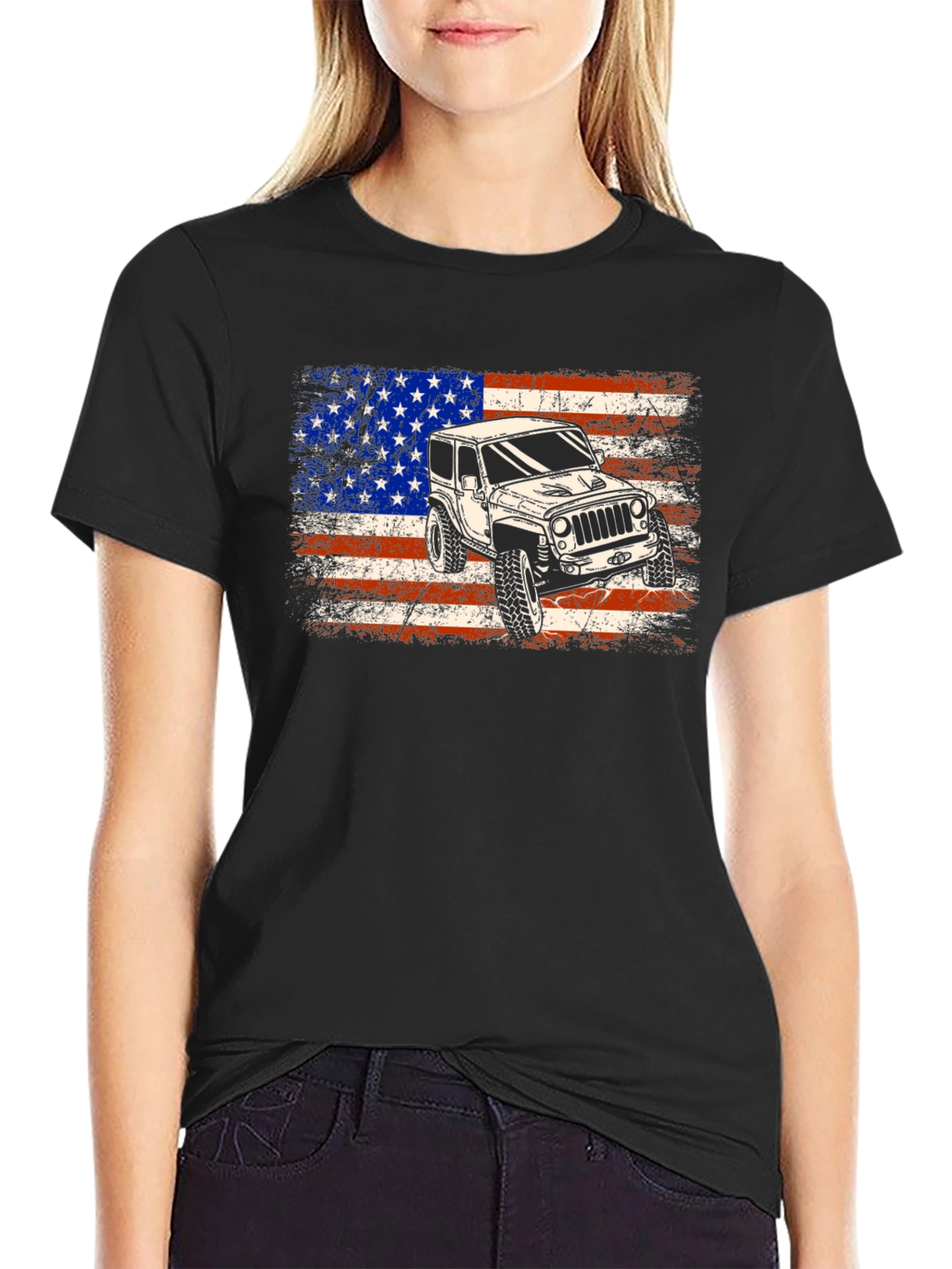 Show your patriotic pride with this black t-shirt featuring a distressed American flag graphic with a Jeep illustration. The design combines rugged Americana with automotive enthusiasm, making it a unique addition to your wardrobe. Made from a comfortable and breathable fabric, this shirt is perfect for casual wear, outdoor adventures, or showing off your love for Jeeps. The faded and weathered look of the flag adds a vintage touch, while the bold Jeep graphic gives it a modern edge. Makes a great gift for Jeep enthusiasts and American patriots alike.
