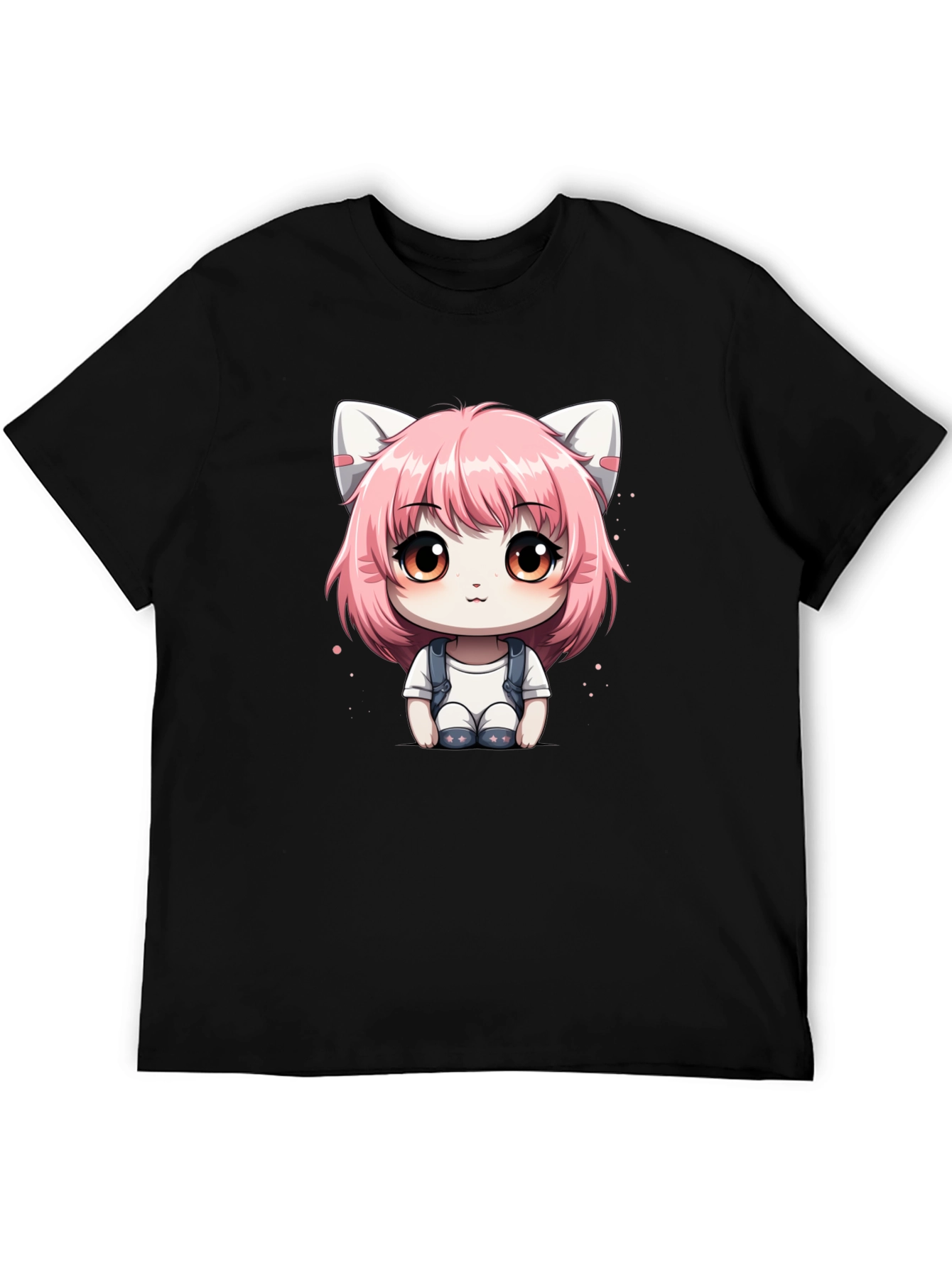 Show off your unique style with this eye-catching black cotton t-shirt featuring a cute anime cat girl graphic. The design showcases a charming character with pink hair, big innocent eyes, and adorable cat ears, all set against a clean black backdrop. Made from soft, breathable cotton, this tee offers both comfort and durability, perfect for everyday wear. Whether you're a fan of anime, cats, or simply love playful designs, this t-shirt is a must-have addition to your wardrobe. It's ideal for casual outings, lounging at home, or expressing your personality at conventions and meetups. Grab yours now and let your inner otaku shine!