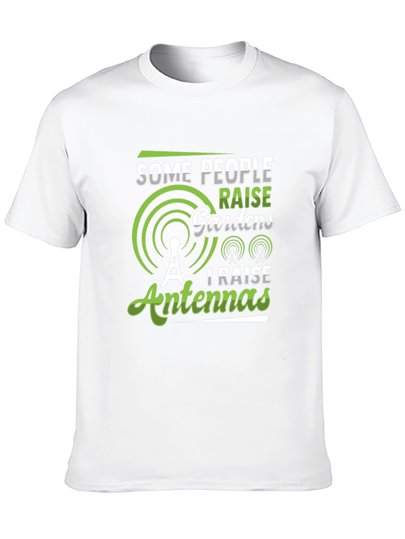 Show off your hobby with this eye-catching black tee! Featuring a unique graphic design, this shirt reads "Some People Raise Gardens, I Raise Antennas", and features a green antenna graphic. Made from a comfortable fabric, this tee is perfect for everyday wear. Whether you're an amateur radio enthusiast or simply appreciate unique designs, this t-shirt is a great addition to your wardrobe. The perfect conversation starter for ham radio meetings or casual outings with friends. Get yours today!