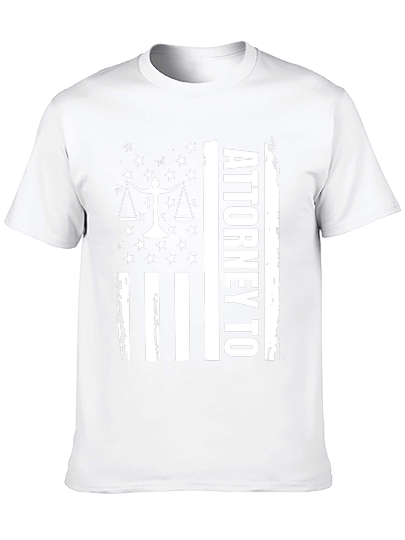 Show your legal pride with this bold black t-shirt featuring a striking American flag-inspired design. The graphic incorporates the scales of justice surrounded by stars, traditional flag stripes, and the words "ATTORNEY TO" in a vertical display. The print features a weathered look. This tee is perfect for lawyers, law students, or anyone who supports the legal profession. Made from a soft, comfortable fabric blend, it's ideal for casual wear, law school events, or as a gift for your favorite attorney. Make a statement and wear your passion with this unique and eye-catching design!