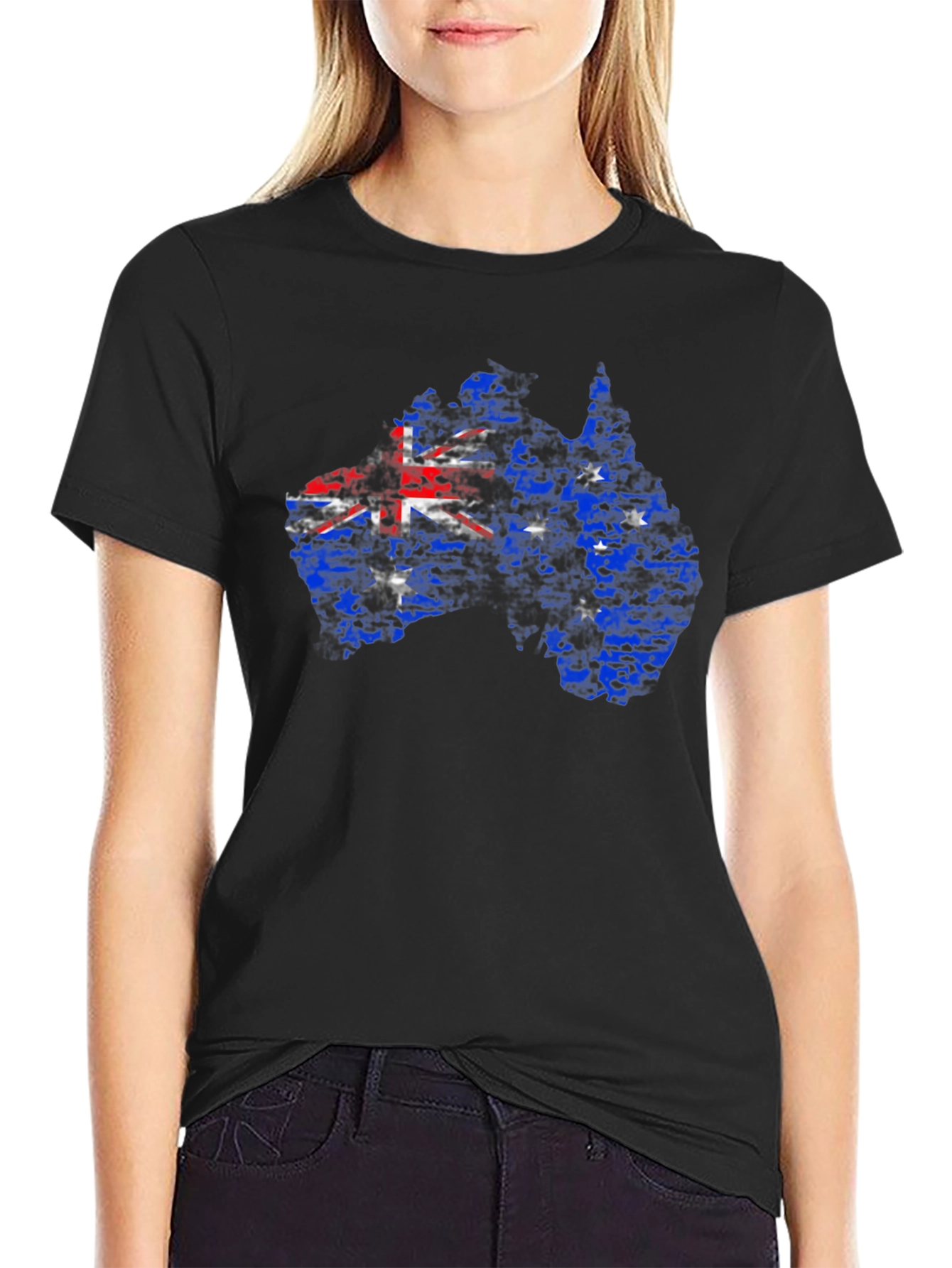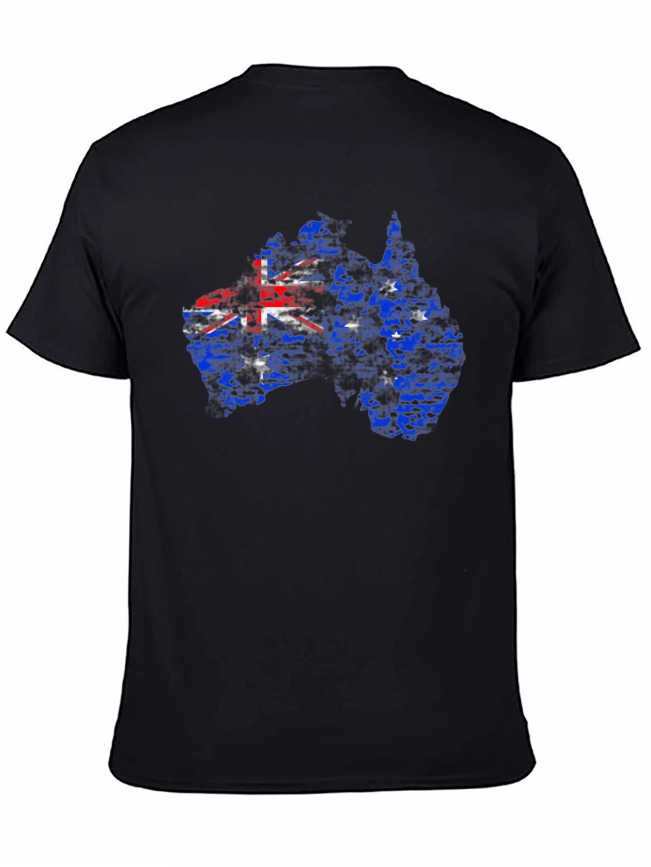 Show your Aussie pride with this unique black graphic tee! Featuring a distressed Australian flag design within the shape of the country's map, this shirt is a bold statement piece. The vibrant red, white, and blue of the flag pop against the dark background. Made from a comfortable cotton blend, this tee is perfect for casual wear, sporting events, or celebrating Australia Day. Pair it with jeans or shorts for a relaxed, stylish look. A must-have for Australians and fans of down under!