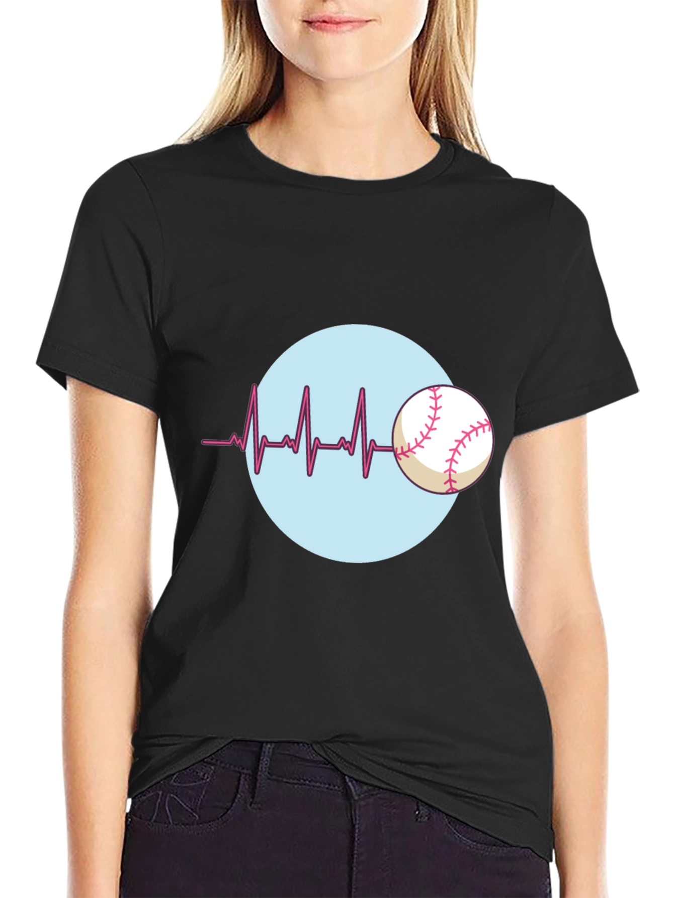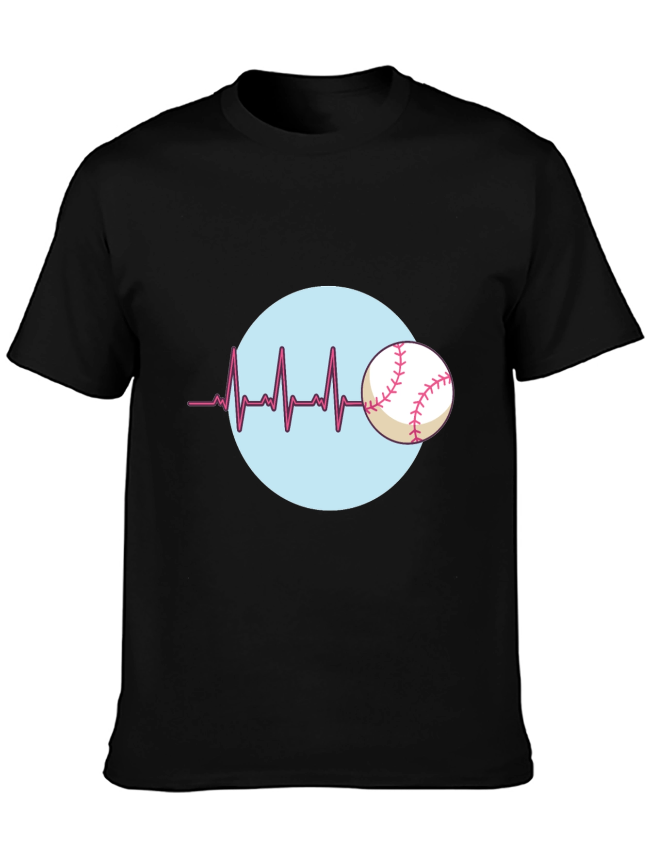 Show your love for baseball with this unique graphic tee! This black t-shirt features a creative design of a baseball integrated with a heartbeat line, set against a light blue circular backdrop. Made from a comfortable-looking cotton fabric, this short-sleeved shirt is perfect for casual wear, sports events, or expressing your passion for the game. The design is eye-catching and fun, making it a great conversation starter. Whether you're a player, a coach, or simply a baseball enthusiast, this shirt is a must-have addition to your wardrobe. A perfect gift for any baseball lover!