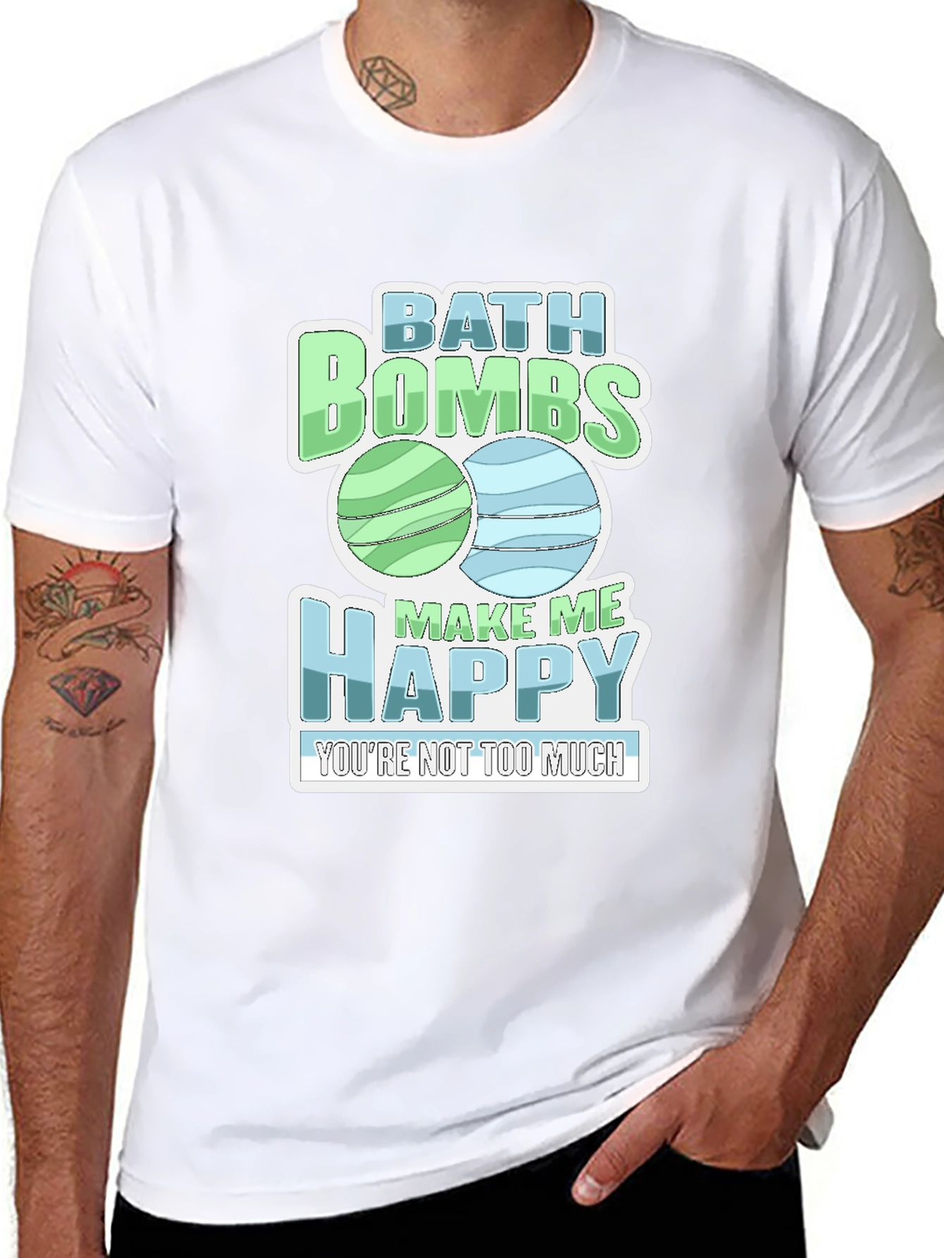 Indulge in relaxation with this unique graphic tee! Featuring a playful "Bath Bombs Make Me Happy" design with charming bath bomb illustrations, this shirt is perfect for bath enthusiasts. Made from soft, breathable fabric, this tee offers all-day comfort. Ideal for casual wear, lounging at home, or a fun spa day with friends. The vibrant design and comfortable fit make it a standout piece in any wardrobe. It also makes a great gift for anyone who loves a soothing soak! Add a touch of whimsy to your everyday style with this delightful graphic tee.