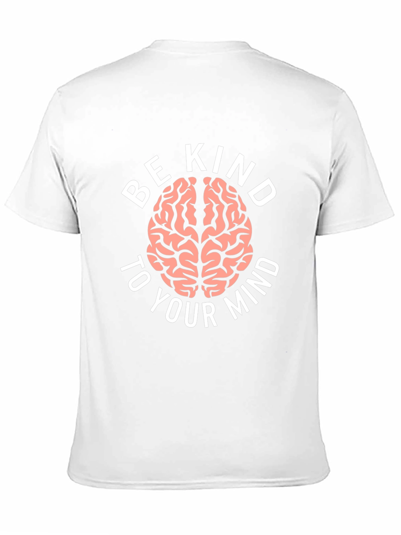 This stylish black t-shirt features a unique and eye-catching design, perfect for promoting mental wellness. The design incorporates a pink brain graphic surrounded by the phrase "Be Kind To Your Mind" in bold, white lettering. Made from a soft and comfortable-looking fabric, this tee is ideal for everyday wear. The classic crew neck and short sleeves ensure a versatile fit that can be dressed up or down. Show your support for mental health awareness with this meaningful and fashionable t-shirt. Wear it casually with jeans or dress it up with a blazer for a smart-casual look.