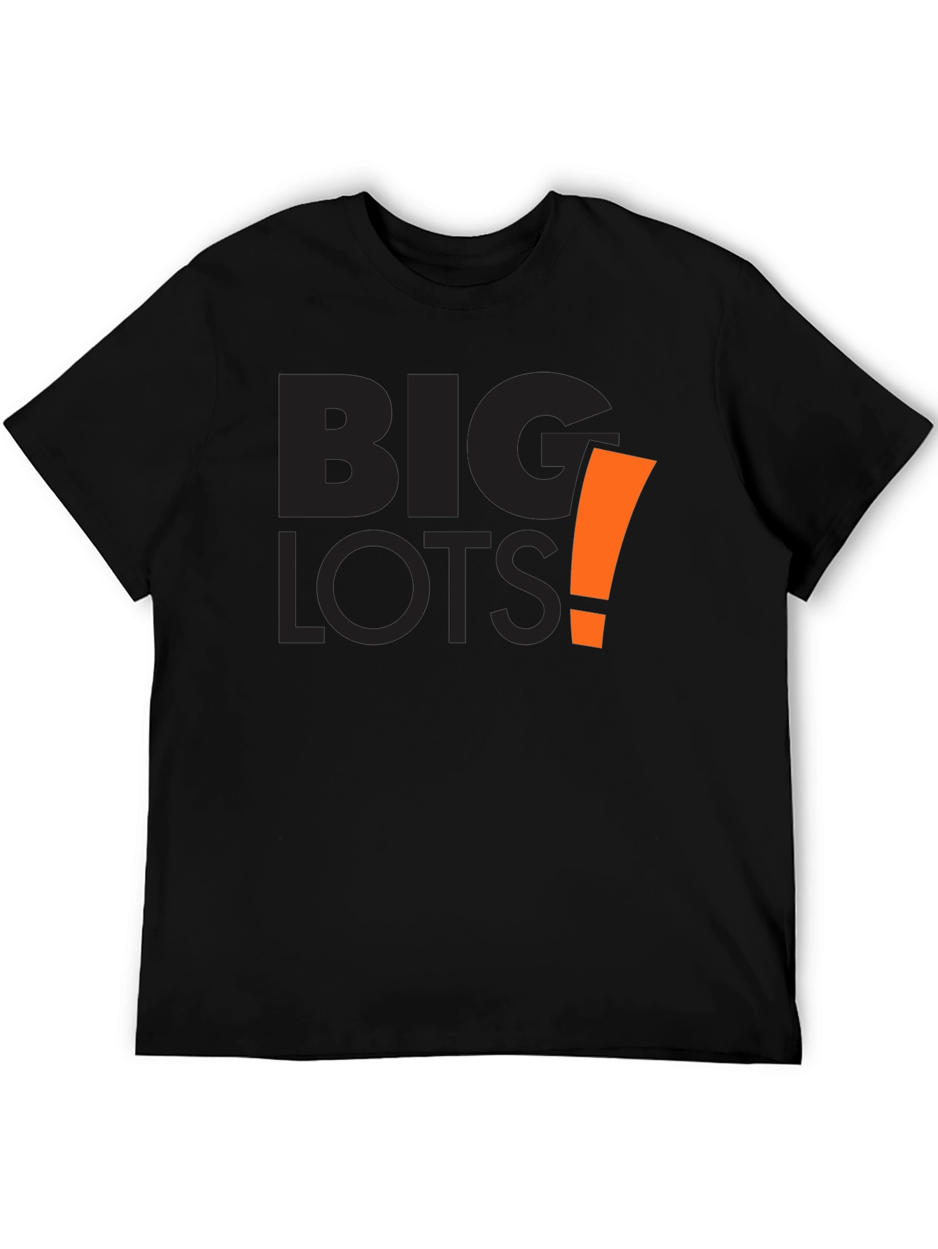Show off your love for bargain hunting with this unique Big Lots graphic tee! Crafted from comfortable black cotton, this casual shirt features the iconic Big Lots logo in a bold design. The striking exclamation point adds a playful touch. Ideal for everyday wear, running errands, or lounging around, this tee combines comfort with a touch of personality. Makes a great conversation starter and a fun way to express your savvy shopping habits. Available in various sizes.