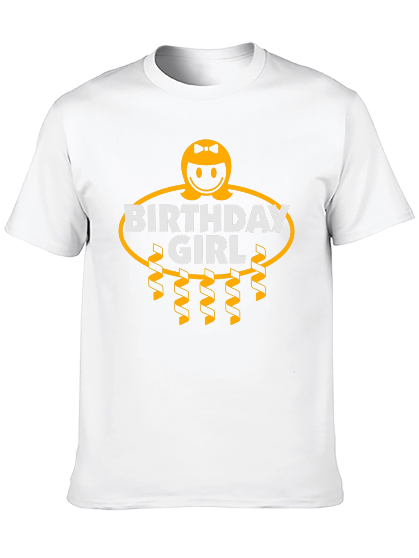Celebrate in style with this fun and festive "Birthday Girl" T-shirt. This black t-shirt features a playful design with a smiling face graphic, enclosed in a yellow oval, with matching yellow streamers underneath the white "BIRTHDAY GIRL" text. The design is printed on a high-quality fabric, ensuring both comfort and durability. This shirt is perfect for birthday parties, celebrations, or simply showing off your special day. A great gift idea or a fun way to stand out on your birthday!