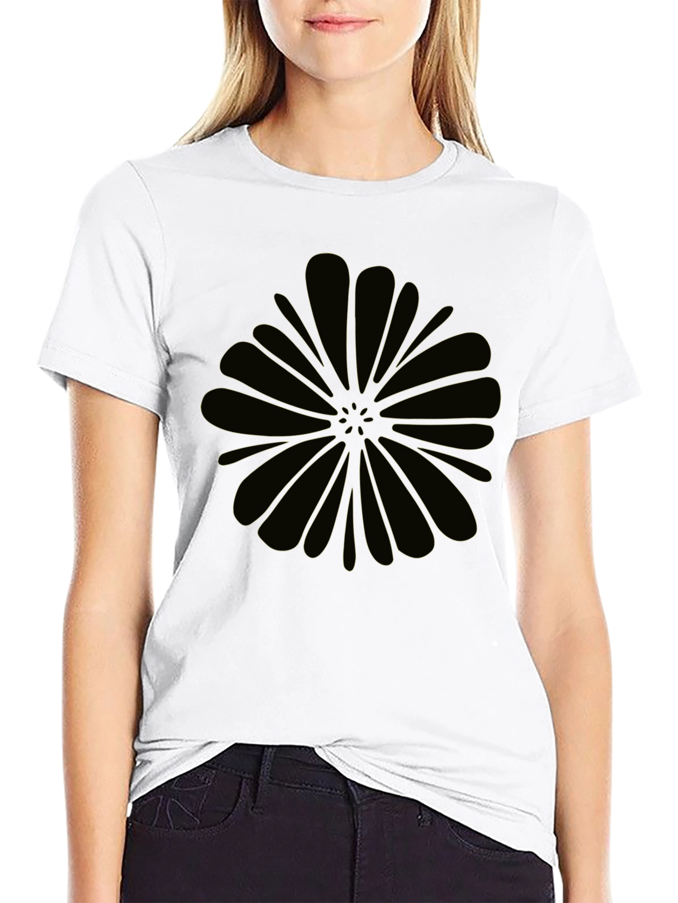 Show off your unique style with this modern black t-shirt. The shirt features a bold, abstract flower design in a matching black hue, creating a subtle yet eye-catching graphic. Made from a soft, comfortable fabric, this tee is perfect for everyday wear. Its versatile design makes it easy to dress up or down, pairing well with jeans, shorts, or even a skirt. Ideal for casual outings, concerts, or simply relaxing at home, this stylish t-shirt will quickly become a wardrobe favorite. Add a touch of understated flair to your look with this must-have piece.
