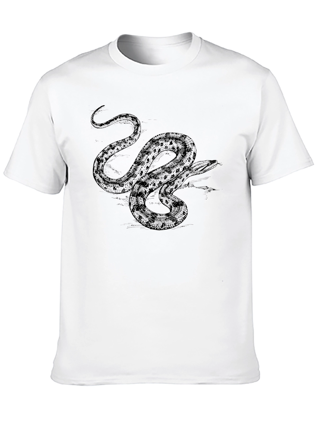 Show off your unique style with this black men's t-shirt featuring a striking snake graphic. The detailed design adds an edgy and eye-catching element to this comfortable and casual tee. Perfect for everyday wear, this versatile shirt pairs well with jeans, shorts, or layered under a jacket. Made from a soft, breathable fabric, it ensures all-day comfort and a great fit. Whether you're hitting the town or just relaxing at home, this snake graphic tee is a must-have for any modern wardrobe. Express your individuality and make a statement with this standout piece.