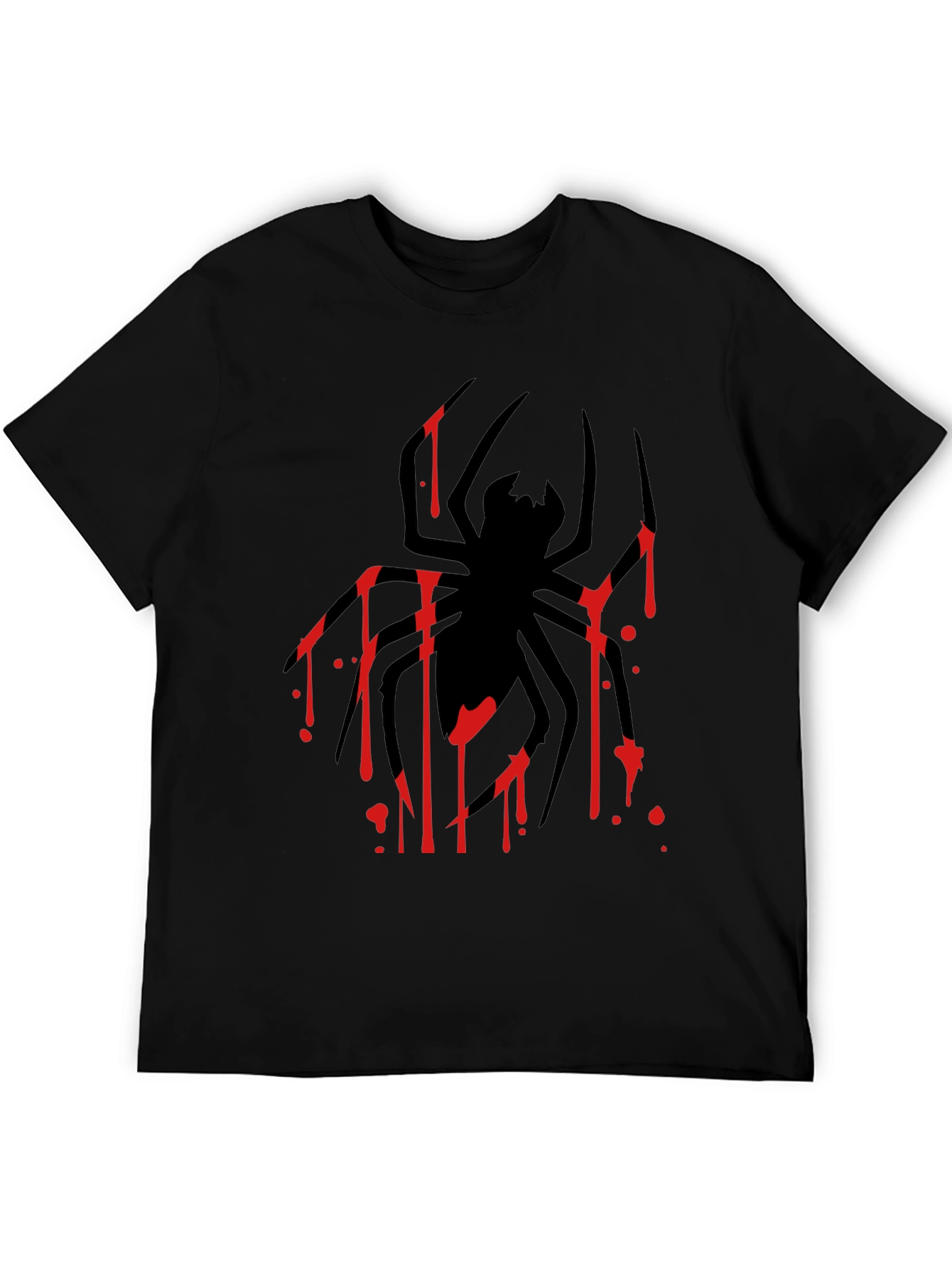 Make a bold statement with this striking black t-shirt featuring a distinctive spider graphic. The design showcases a large, silhouetted spider with dripping, red accents for an edgy and eye-catching look. Crafted from a soft, comfortable fabric, this tee offers a relaxed fit for all-day wear. Perfect for casual outings, Halloween events, or expressing your unique style. This unique tee effortlessly combines comfort and a bold design, making it a versatile addition to your wardrobe. Show off your individuality and stand out from the crowd with this graphic tee.