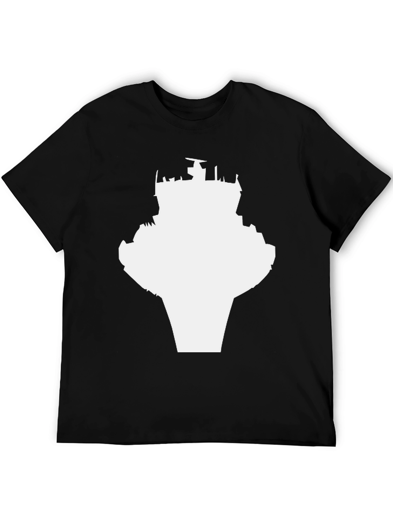 Elevate your casual style with this unique black t-shirt. The shirt features a striking, abstract white graphic resembling a stylized tower or building silhouette. Its clean lines and bold contrast make it a standout piece. Crafted from a comfortable, breathable fabric, this t-shirt is perfect for everyday wear. Pair it with jeans or shorts for a relaxed yet fashionable look. Showcase your distinctive style and spark conversations with this eye-catching graphic tee. This is an excellent addition to any modern wardrobe and offers a fresh take on classic casual wear.