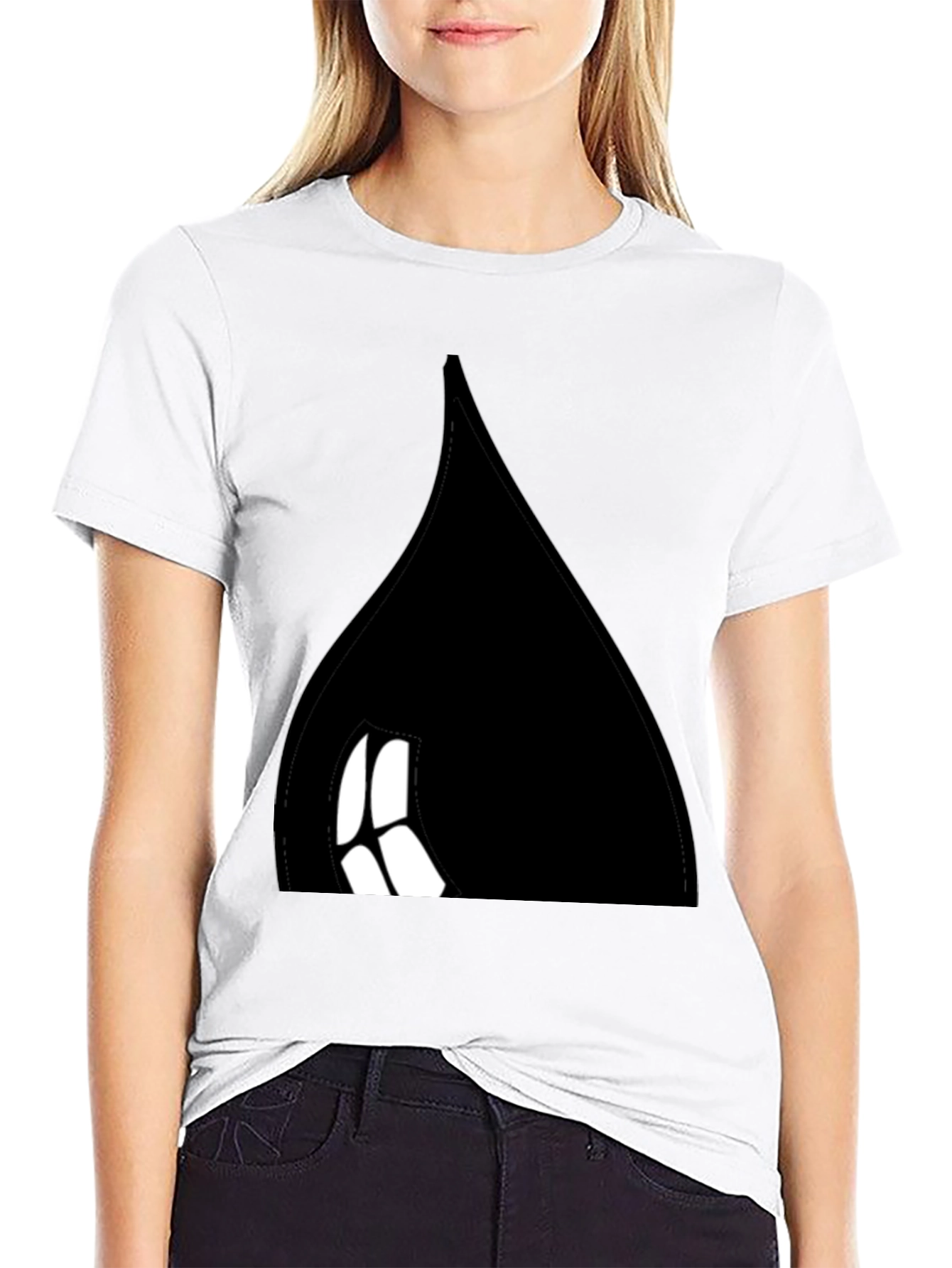 This black t-shirt features a bold, abstract design. The black fabric offers a classic and versatile style. The unique graphic catches the eye and adds a touch of edgy fashion to any casual look. Made from comfortable material, this tee is perfect for everyday wear, whether you're hanging out with friends, running errands, or just relaxing at home. Pair it with jeans, shorts, or chinos for a stylish and effortless outfit. Express your individuality with this modern and fashionable t-shirt.
