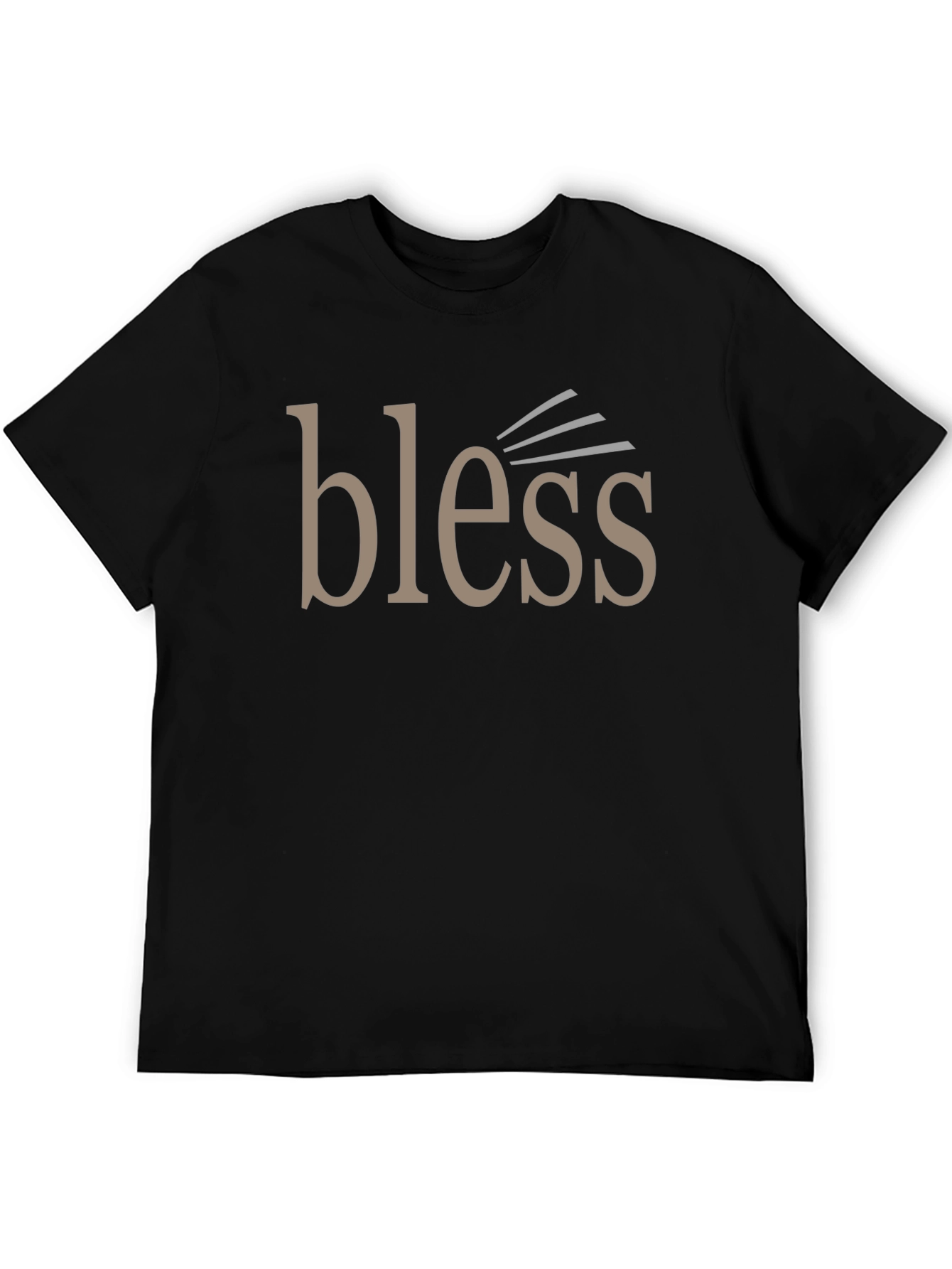 This sleek black t-shirt features the word "bless" in an elegant tan font, adorned with subtle grey lines adding a touch of modern flair. Crafted from a soft-looking fabric, this tee promises all-day comfort and a stylish fit. The design is simple yet eye-catching, making it a versatile piece for casual wear. Perfect for expressing positivity, this shirt can be paired with jeans, shorts, or joggers for a relaxed yet fashionable look. Whether you're heading to a casual hangout, running errands, or simply lounging at home, this "bless" graphic tee is a great way to showcase your style and spread good vibes. It's more than just a shirt, it's a statement.