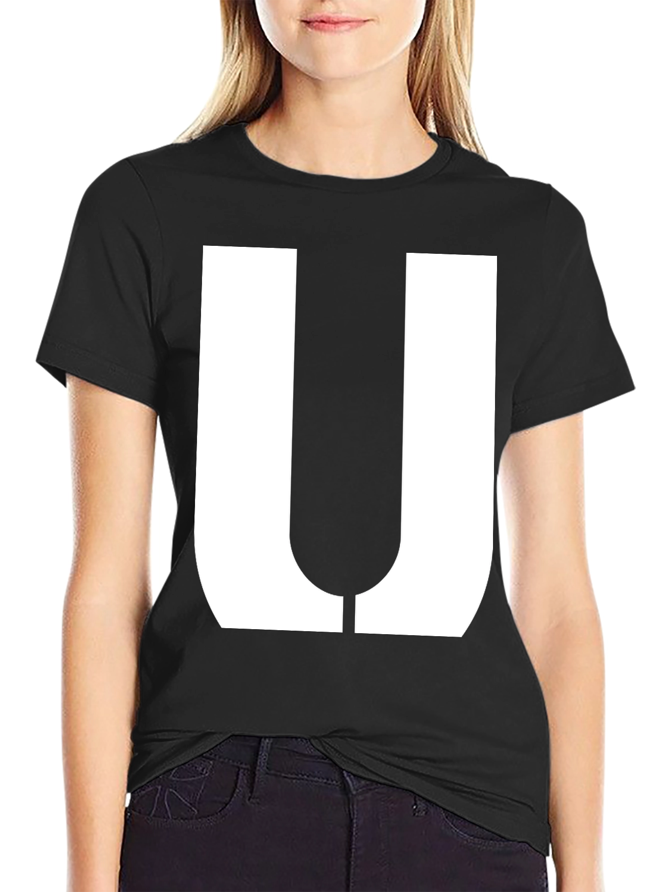 Make a statement with this eye-catching black T-shirt featuring a large, bold white "U" graphic. Crafted from soft, comfortable cotton, this tee offers a relaxed fit perfect for everyday wear. The striking contrast of the white letter against the black fabric ensures you'll stand out from the crowd. Ideal for casual outings, weekend adventures, or simply lounging at home, this versatile T-shirt adds a touch of modern style to any outfit. Pair it with jeans, shorts, or your favorite casual bottoms for a cool, effortless look. Show off your unique style and make a bold statement with this graphic tee.