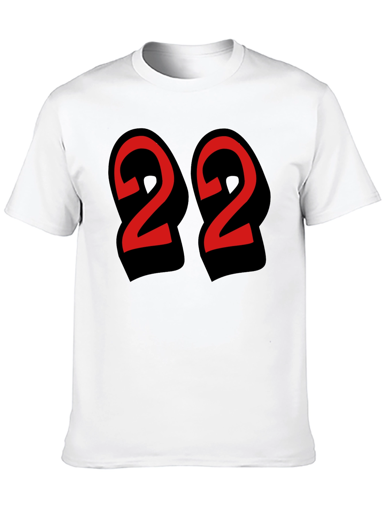 Show off your unique style with this eye-catching black t-shirt featuring a bold, stylized number "22" design in a vibrant red with contrasting black accents. Made from a comfortable-looking cotton blend, this tee offers both style and breathability. The classic fit ensures a relaxed and flattering silhouette for everyday wear. Perfect for casual outings, sporting events, or simply lounging at home, this standout tee is a versatile addition to any wardrobe. Pair it with jeans, shorts, or your favorite joggers for an effortlessly cool look. Make a statement and let your personality shine with this unique graphic tee.
