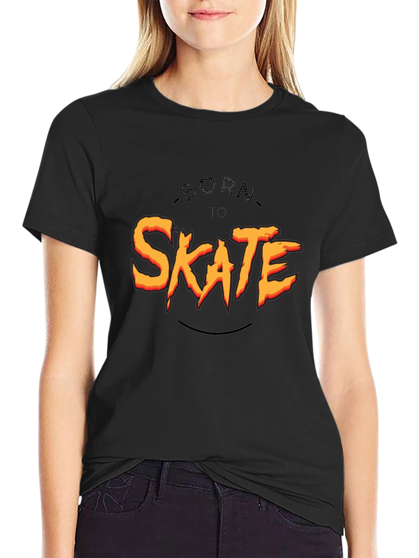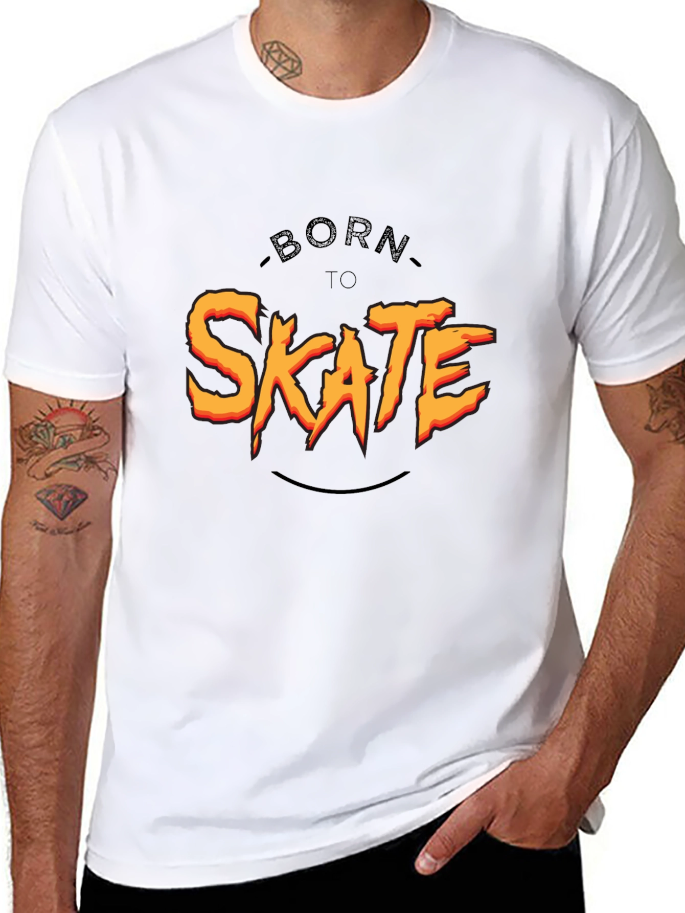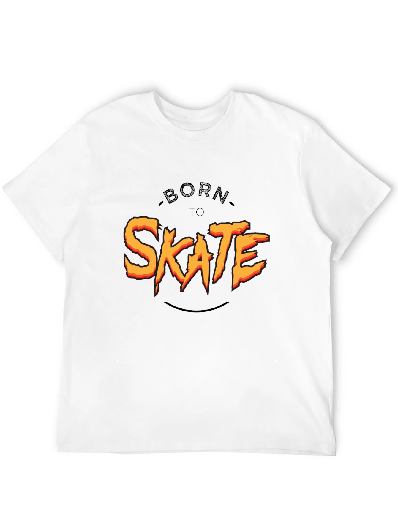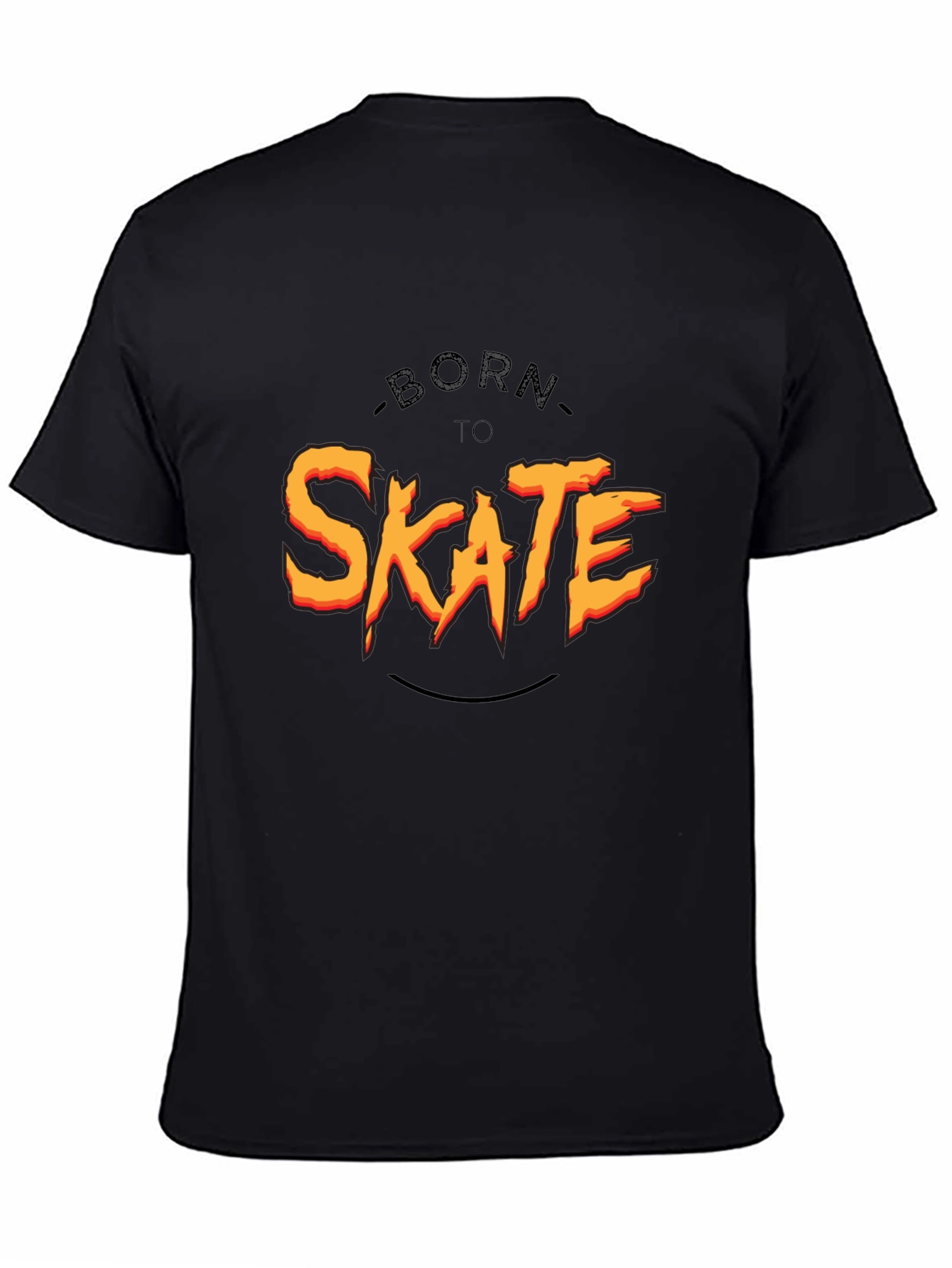 Show off your love for skateboarding with this cool black graphic tee. The shirt features a bold "Born To Skate" design in vibrant orange and yellow, making a statement wherever you go. Made from comfortable material, it's perfect for everyday wear, whether you're hitting the skate park or just hanging out. The classic fit makes it a versatile addition to any wardrobe. A must-have for skaters and anyone who loves casual style, this tee combines comfort, durability, and a rad design.