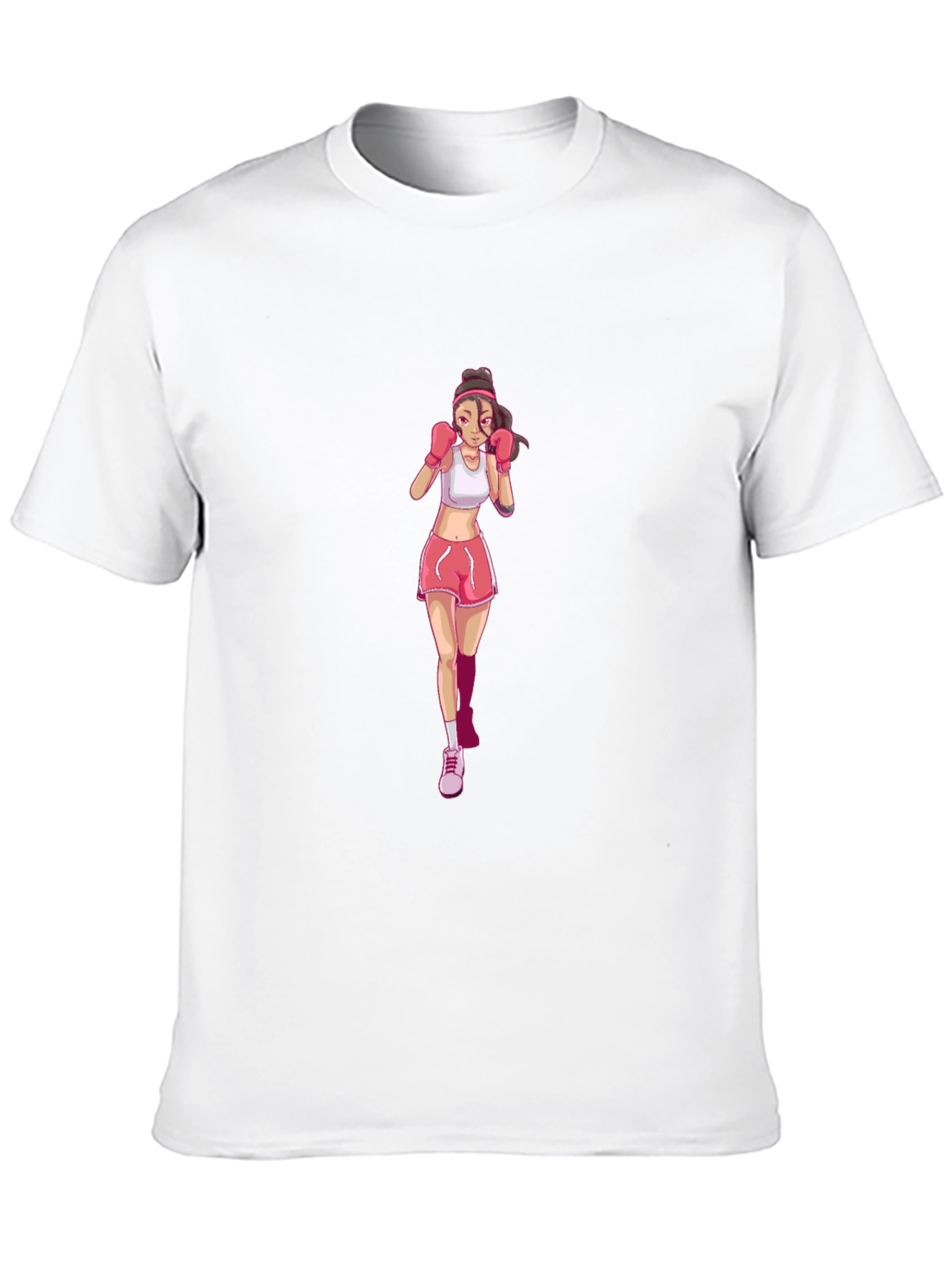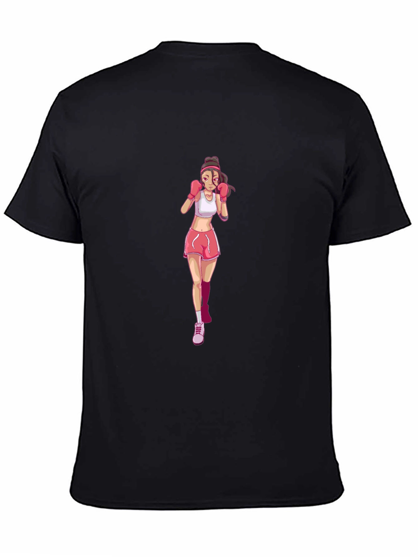 Boxing Girl Graphic Tee - Black Cotton T-Shirt
