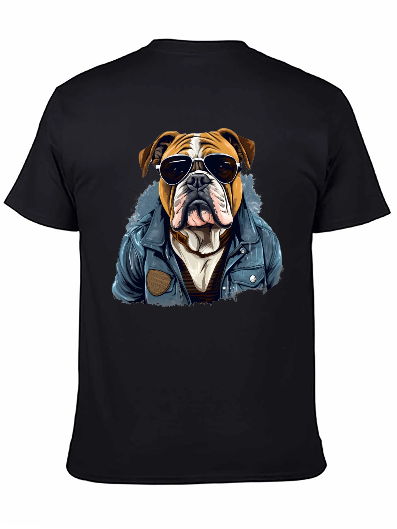 Step out in style with this unique graphic tee featuring a bulldog sporting cool sunglasses and a denim jacket. This bold design is printed on a classic black tee, offering a striking contrast that's sure to turn heads. Crafted from a comfortable, breathable fabric, this shirt is perfect for casual wear, concerts, or making a statement wherever you go. The detailed artwork showcases the bulldog's confident attitude, making it an ideal choice for dog lovers and fashion enthusiasts alike. Available in various sizes. Get yours today and unleash your inner cool!