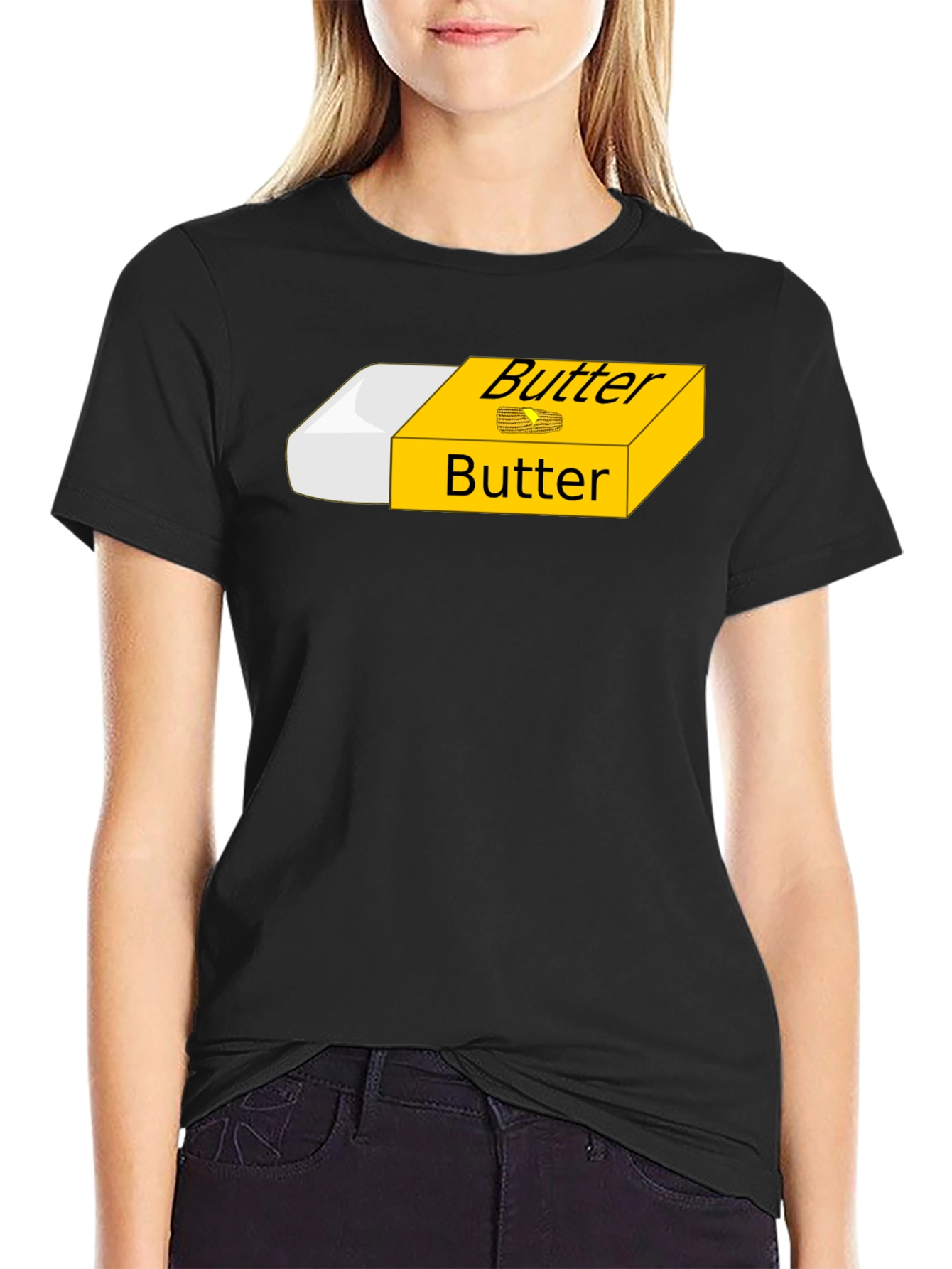 This black unisex t-shirt features a fun and eye-catching graphic print of a butter package. The design is bold and playful, making it a great conversation starter. Made from comfortable, breathable fabric, this tee is perfect for everyday wear. The classic fit ensures a flattering look for both men and women. Ideal for casual outings, social gatherings, or simply lounging at home. Show off your unique sense of humor and style with this trendy butter graphic tee. A must-have for foodies and anyone who loves quirky apparel. Get yours today and add a touch of fun to your wardrobe!