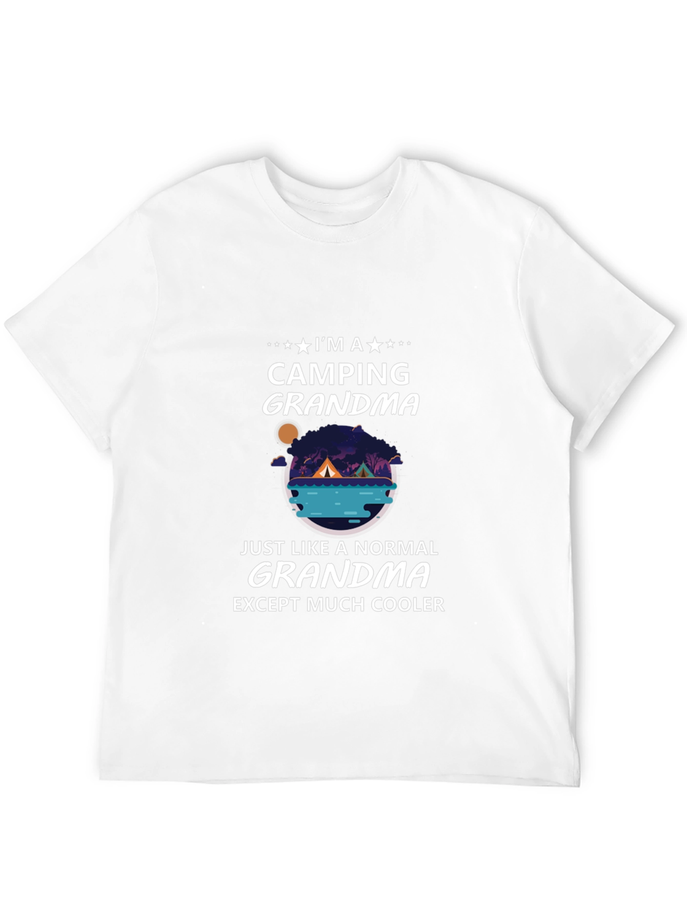 This black t-shirt features a fun and playful design perfect for the camping enthusiast grandma. The design showcases a camping scene and the text "I'M A CAMPING GRANDMA JUST LIKE A NORMAL GRANDMA EXCEPT MUCH COOLER". It's made from a soft, comfortable fabric ideal for outdoor adventures or casual wear. The classic fit is flattering and easy to pair with jeans, shorts, or leggings. Show off your adventurous spirit with this unique t-shirt, a guaranteed conversation starter! Whether you're setting up camp, enjoying a hike, or relaxing by the campfire, this t-shirt is the perfect way to express your love for the outdoors.