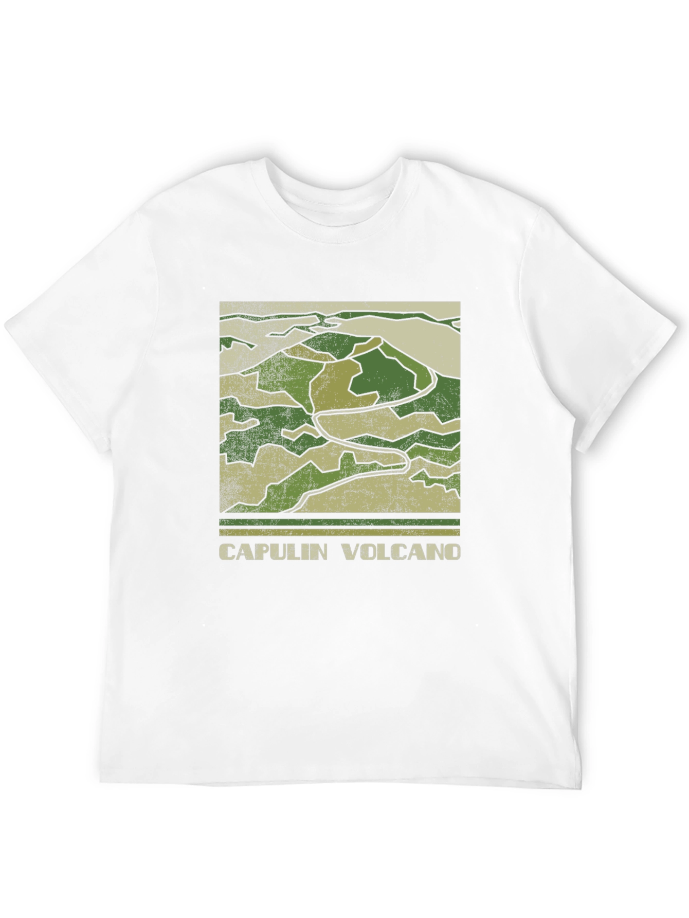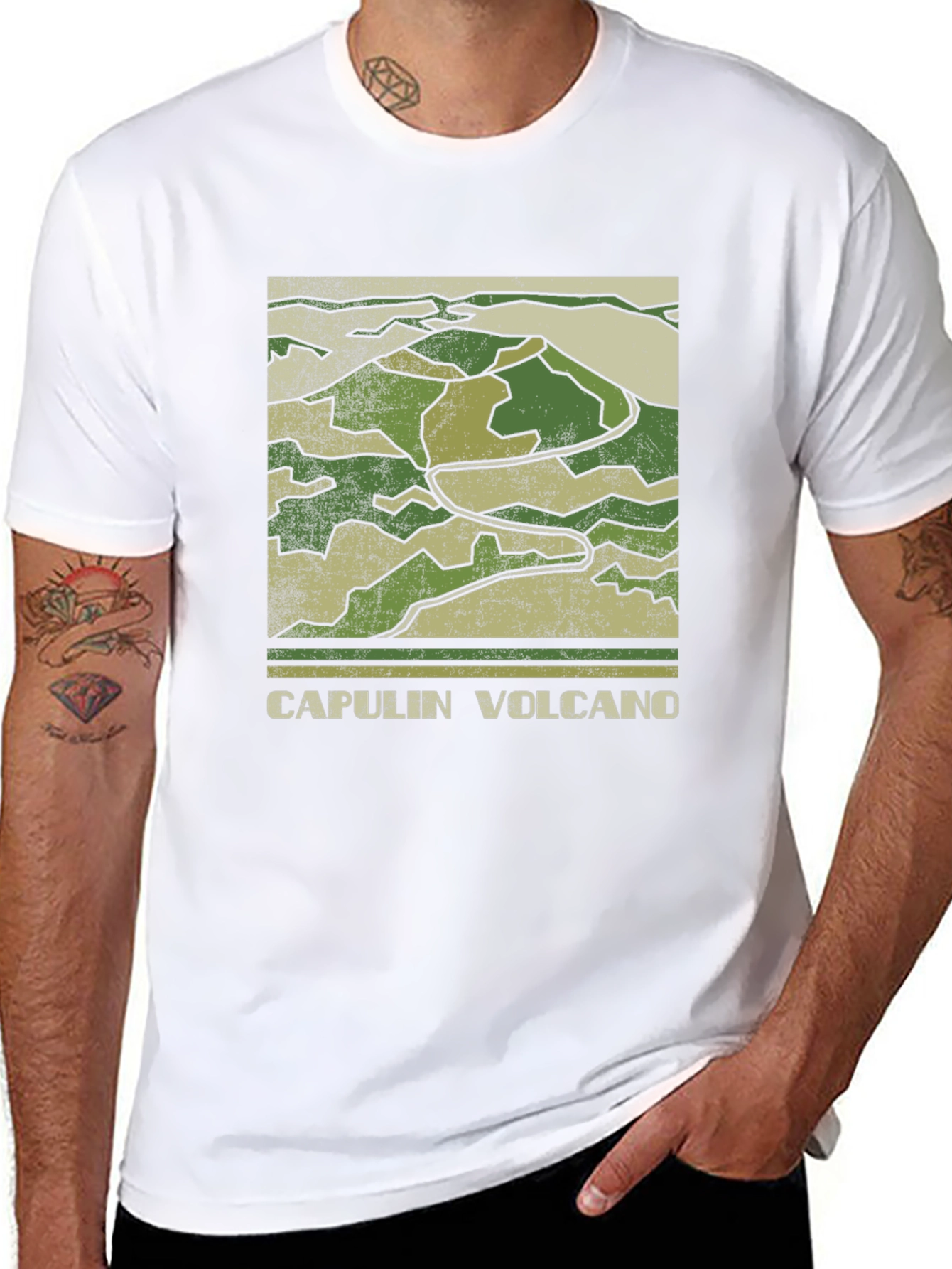 Show your love for the great outdoors with this unique Capulin Volcano T-Shirt. The design features an artistic map-style illustration of the volcano, rendered in shades of green and beige, giving it a vintage, outdoorsy feel. The shirt itself is a classic black tee, made from a comfortable, breathable material. This t-shirt is perfect for casual wear, hiking trips, or as a gift for nature enthusiasts. Its unique design is sure to spark conversations and show off your adventurous spirit. Wear your love for nature with pride!