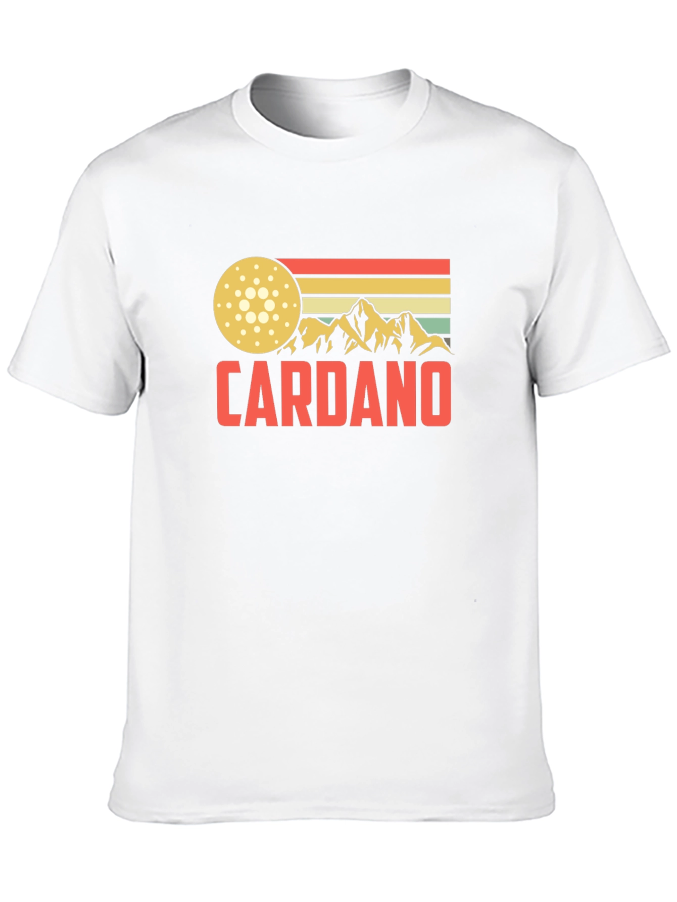 Showcase your support for Cardano with this vintage-inspired t-shirt. The design features a retro mountain and sunset graphic, complete with the Cardano logo and name. Crafted from a comfortable, soft fabric, this tee is ideal for everyday wear. The relaxed fit ensures all-day comfort, whether you're attending a crypto conference, chilling at home, or meeting up with friends. Makes a perfect gift for cryptocurrency enthusiasts and Cardano fans. Own a piece of the digital future with this stylish and unique tee!