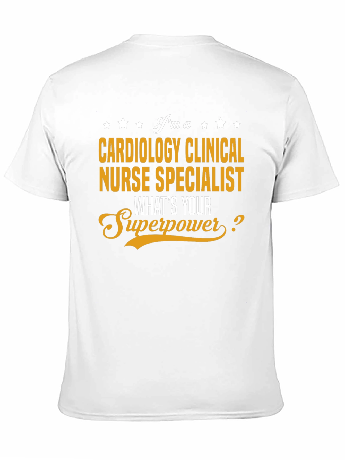Show off your superpower with this Cardiology Clinical Nurse Specialist T-shirt. This black T-shirt proudly proclaims "I'm a Cardiology Clinical Nurse Specialist What's Your Superpower?" in eye-catching yellow and white fonts. The playful script and bold lettering ensures you stand out. Made from a comfortable fabric, this tee is perfect for casual wear, work events, or as a thoughtful gift for the dedicated nurse specialist in your life. Get ready to showcase your incredible skills with this unique and stylish shirt.