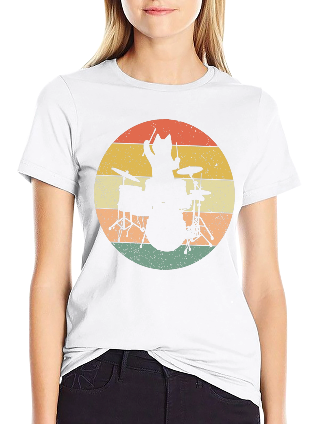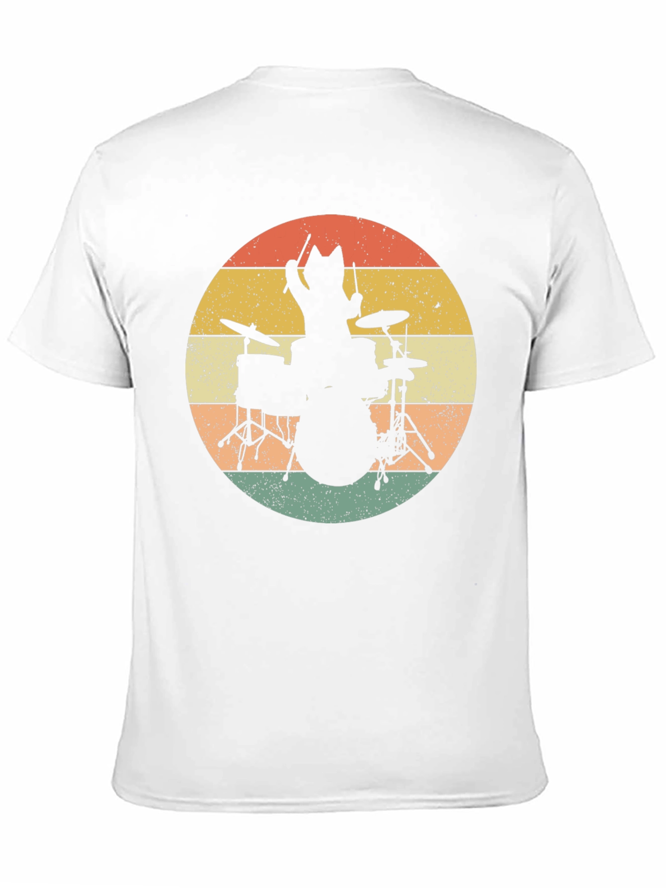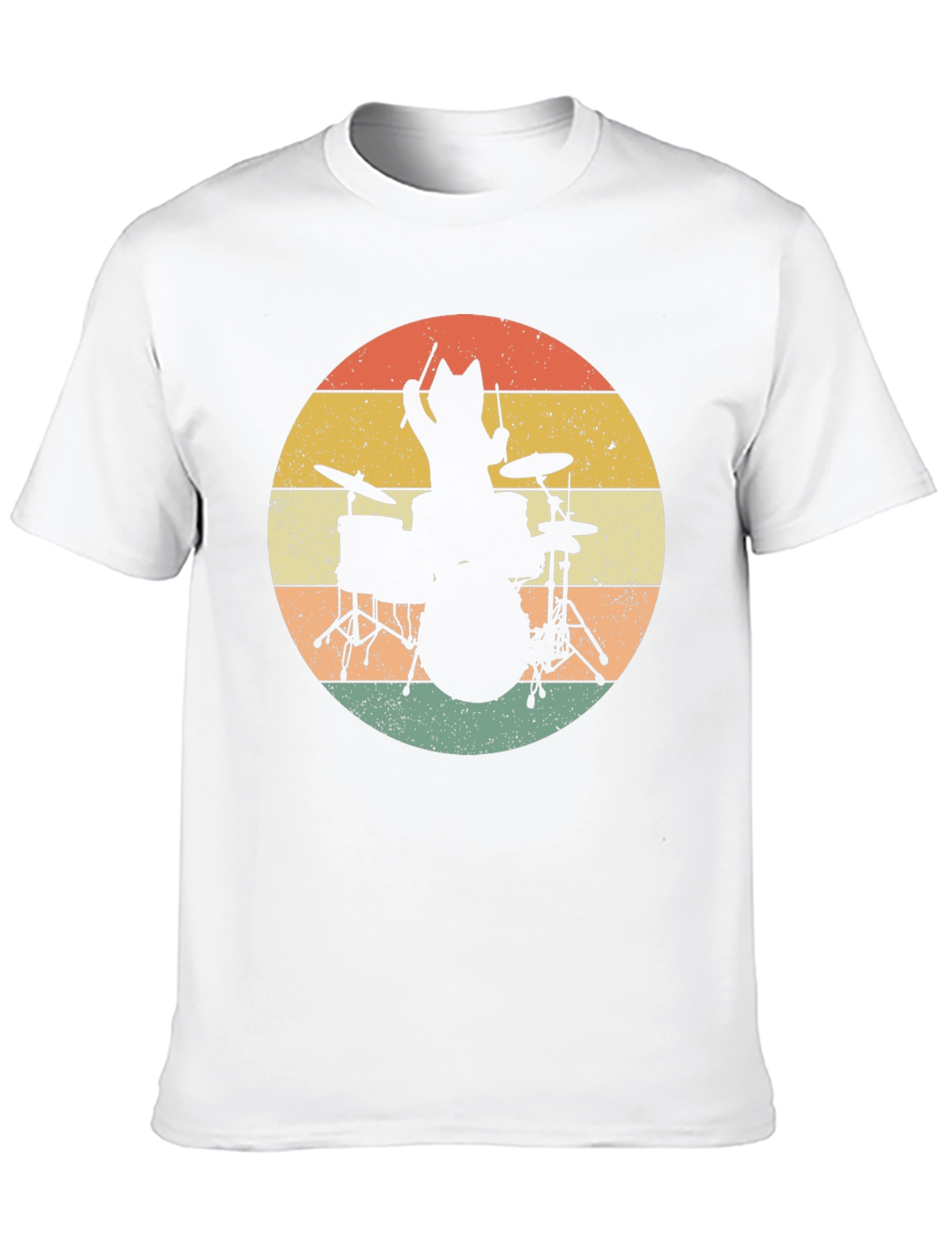 Cat Drummer T-Shirt - Retro Style Black Tee