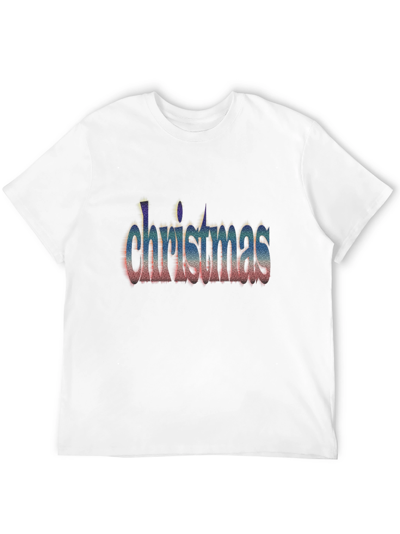 Get into the holiday spirit with this unique black t-shirt featuring the word "Christmas" in a vibrant, textured font. The design showcases a blend of colors, giving it a distinctive and eye-catching look. Made from a soft and breathable fabric, this tee offers a comfortable fit for all-day wear. Whether you're attending a holiday party, running errands, or simply relaxing at home, this Christmas-themed shirt is the perfect choice to spread some festive cheer. Its classic fit makes it a versatile addition to any wardrobe. Pair it with jeans or leggings for a casual yet stylish holiday look.
