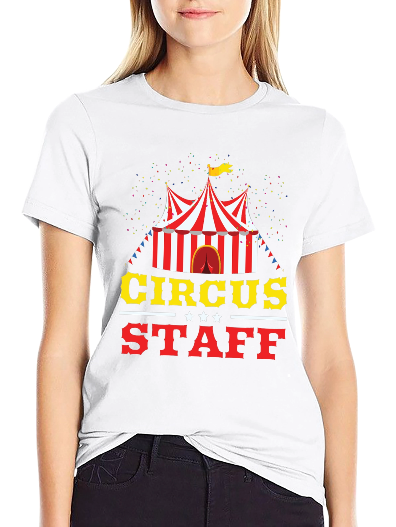 Step right up and join the fun with this eye-catching Circus Staff graphic tee! The shirt features a vibrant design of a classic red and white striped circus tent. The words "CIRCUS STAFF" are boldly printed in yellow and red, adding a touch of nostalgia. Made from a comfortable material, this tee is perfect for casual wear or a themed event. Show your love for the big top with this unique and playful shirt, perfect for circus enthusiasts, performers, and anyone who enjoys a bit of whimsy. Get yours today and let the show begin!