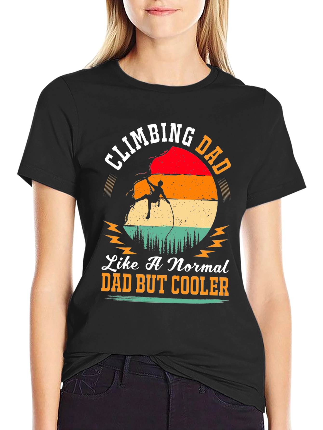 Show off your adventurous side with this stylish Climbing Dad T-shirt. This black tee features a bold graphic design with a climber silhouette set against a vintage sunset backdrop. The text "CLIMBING DAD Like A Normal DAD BUT COOLER" adds a playful touch. Made from soft, breathable fabric, this tee offers all-day comfort and a great fit. Ideal for casual outings, workouts, or as a unique gift for the active dad in your life. Perfect for Father's Day, birthdays, or just because. Get yours today and let everyone know you're a climbing dad who's cooler than average!