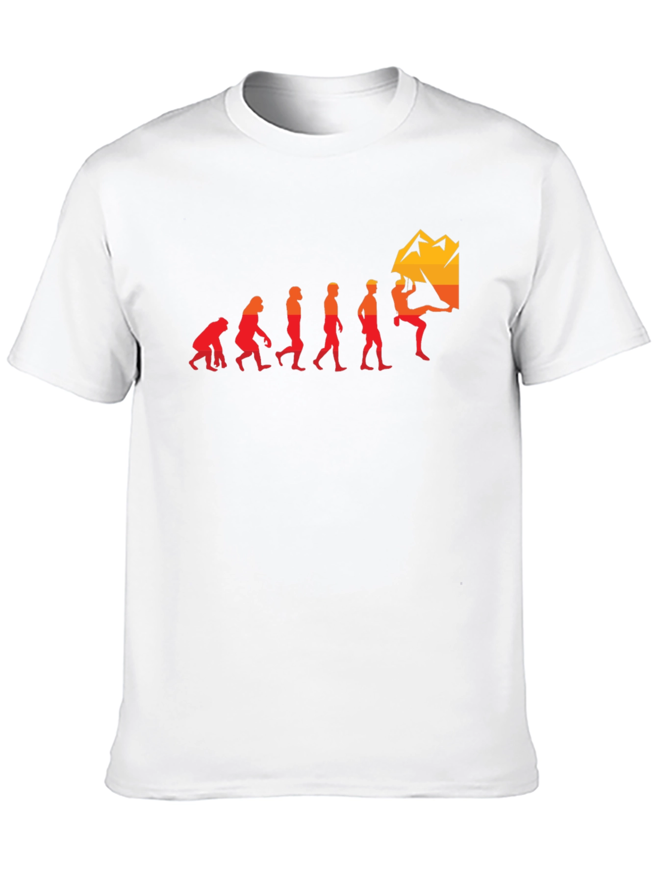 Show off your love for climbing with this unique black t-shirt. This stylish tee features an eye-catching design that illustrates the evolution of humans to rock climbers, complete with mountain details. Made from a comfortable, breathable fabric, this shirt is perfect for everyday wear or your next climbing session. Its unique design makes it an excellent gift for climbers and outdoor enthusiasts. Stand out and express your passion for climbing with this cool t-shirt.