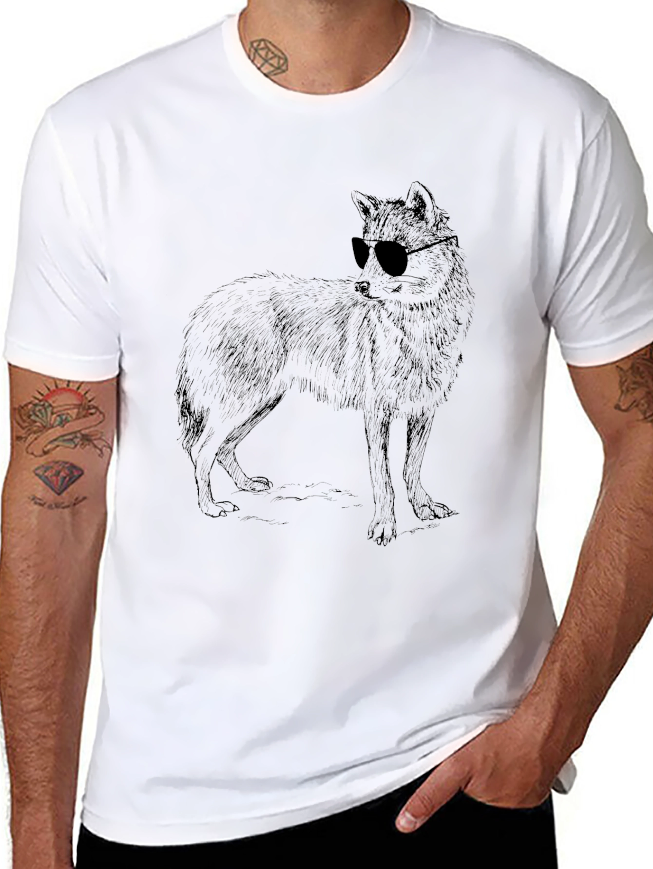 Show off your wild side with this cool black tee featuring a stylish wolf graphic! The shirt showcases a wolf wearing sunglasses, giving it a unique and trendy vibe. Made from a soft and comfortable fabric, this tee is perfect for everyday wear. Its classic cut and dark color make it versatile, easy to pair with jeans, shorts, or joggers for a relaxed yet fashionable look. Whether you're heading out for a casual hangout or just want to add some edge to your wardrobe, this wolf graphic tee is a great choice. Express your personality with this striking design!