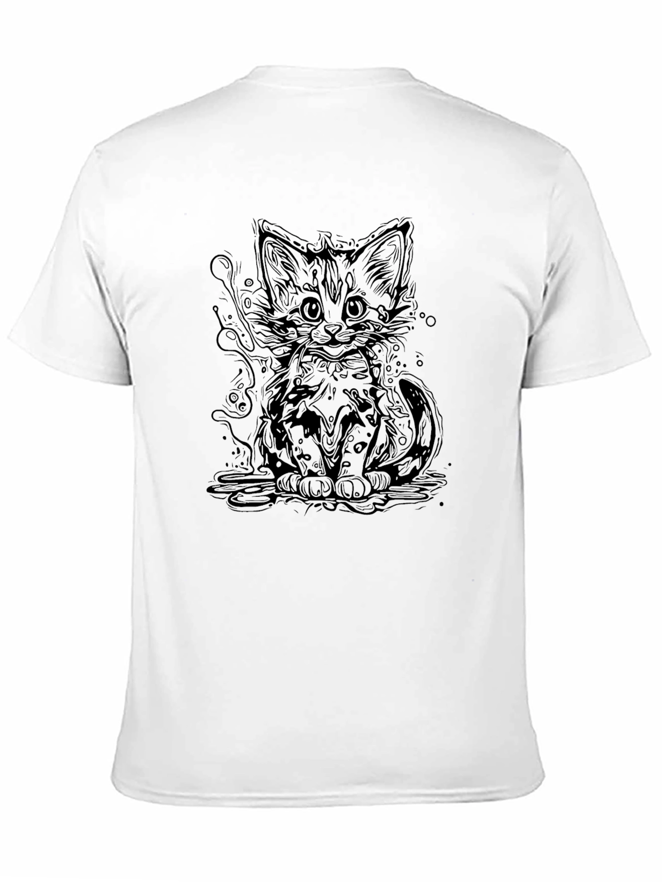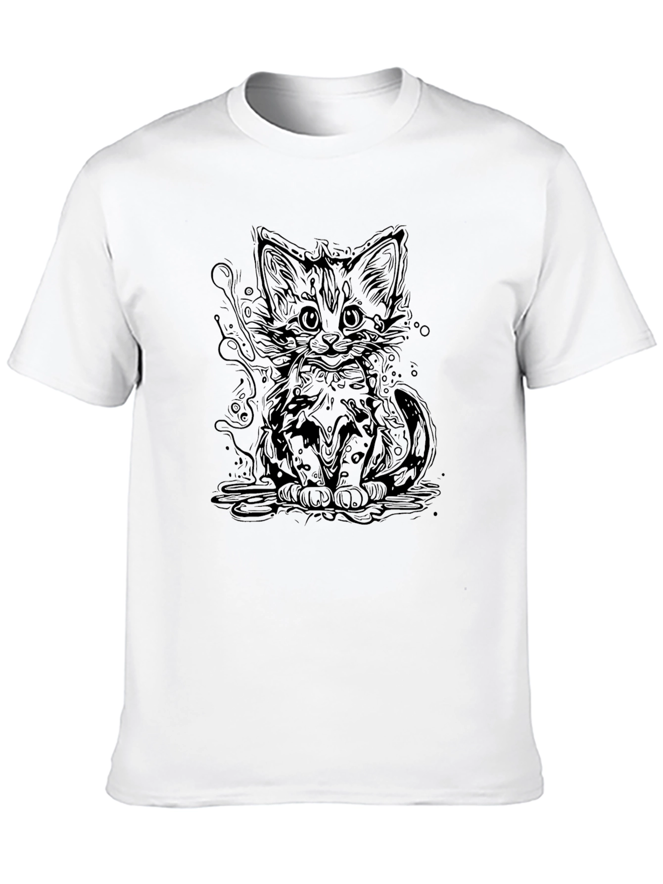 Show off your unique style with this striking black t-shirt! Featuring a distinctive graphic of an adorable cartoon cat, this tee is perfect for casual wear or making a statement. The black colorway ensures versatility, pairing effortlessly with jeans, shorts, or skirts. Crafted from a comfortable material, this shirt promises all-day wearability. The detailed cat design adds a touch of whimsy and charm to your wardrobe. Ideal for cat lovers or anyone who appreciates eye-catching apparel. Elevate your everyday look with this must-have graphic tee!