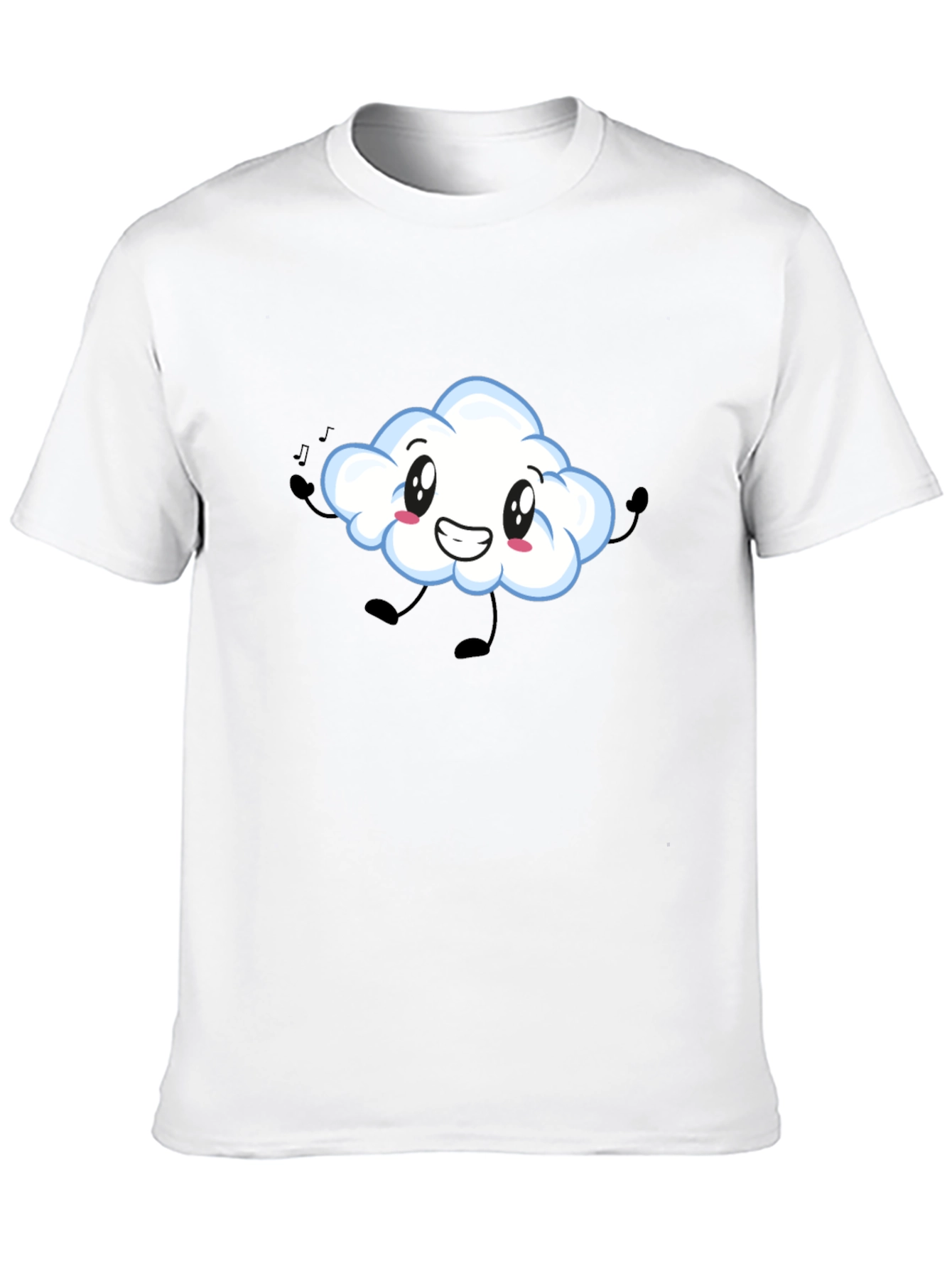 Add a touch of whimsy to your wardrobe with this charming black t-shirt. Featuring a delightful graphic of a cute, animated cloud with rosy cheeks and a cheerful smile, this tee is sure to brighten your day. The cloud is depicted dancing with musical notes, adding a playful touch. Made from a soft, comfortable fabric, this shirt is perfect for casual wear. Pair it with jeans, shorts, or a skirt for a fun, everyday look. This t-shirt is a great way to showcase your fun personality. A great gift for yourself or any cloud-lover in your life!