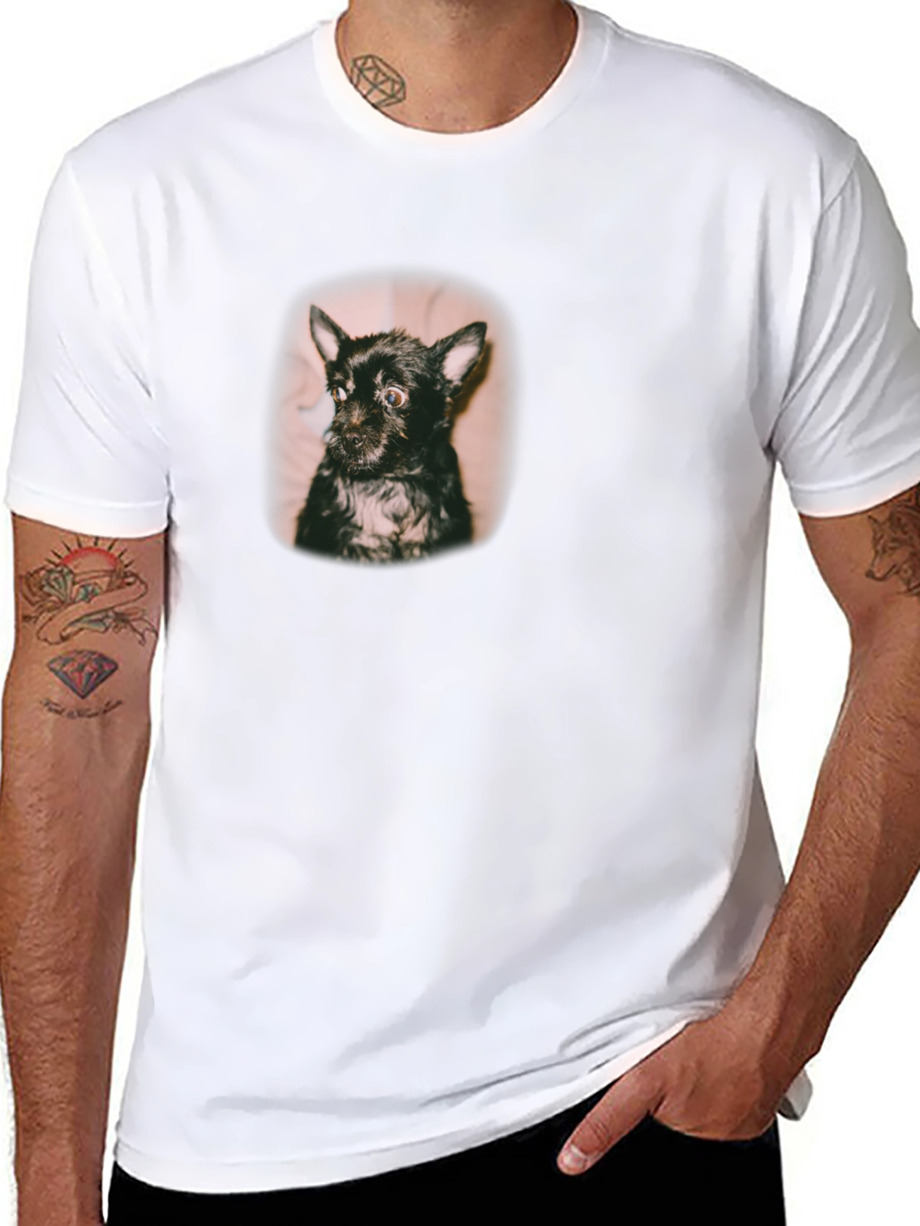 Show your love for dogs with this unique black t-shirt! Featuring a striking portrait of an adorable black dog, this tee is perfect for casual wear and dog lovers alike. Made from comfortable, breathable fabric, it offers a great fit and lasting durability. The high-quality print ensures the dog's endearing expression remains vibrant wash after wash. Wear it to the park, dog shows, or just lounging at home – this shirt is sure to spark conversations and smiles. A fun and stylish way to express your passion for furry friends!