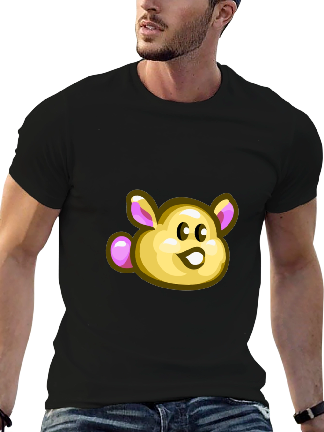 Show off your playful side with this black t-shirt featuring an adorable hamster graphic. The bright, cartoon-style hamster design brings a fun and cheerful vibe to any outfit. Made from comfortable materials, this tee is perfect for everyday wear, casual outings, or lounging at home. Its classic fit makes it versatile and easy to pair with jeans, shorts, or joggers. Express your unique style with this eye-catching and conversation-starting tee!