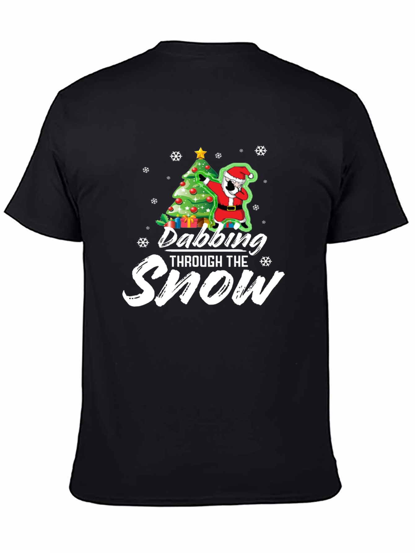 Get into the holiday spirit with this fun and festive black graphic tee. Featuring a cool design of Santa dabbing next to a decorated Christmas tree. The tee is made from a comfortable, breathable fabric, making it perfect for casual wear during the Christmas season. Show off your love for Christmas and make a statement at holiday parties or while relaxing at home. The eye-catching graphic is sure to spark conversations and spread some cheer. A must-have addition to your holiday wardrobe, or a fun gift for friends and family!