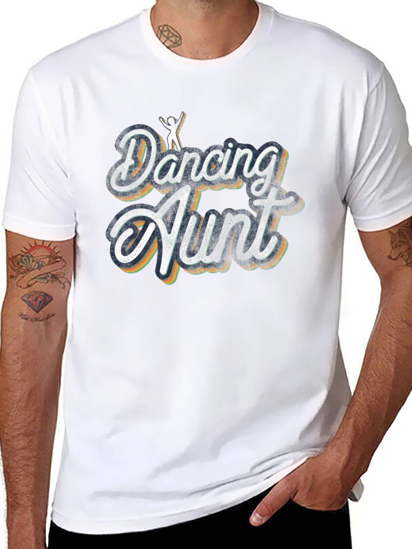 Show off your fun side with this classic black T-shirt featuring a 'Dancing Aunt' graphic. The retro-inspired design pops with a playful font and an adorable dancing stick figure. Perfect for casual outings or family gatherings, this tee is a conversation starter and a comfortable wardrobe staple. Made with soft, breathable fabric, it's ideal for all-day wear. Celebrate your love for dance and family with this unique and stylish shirt!