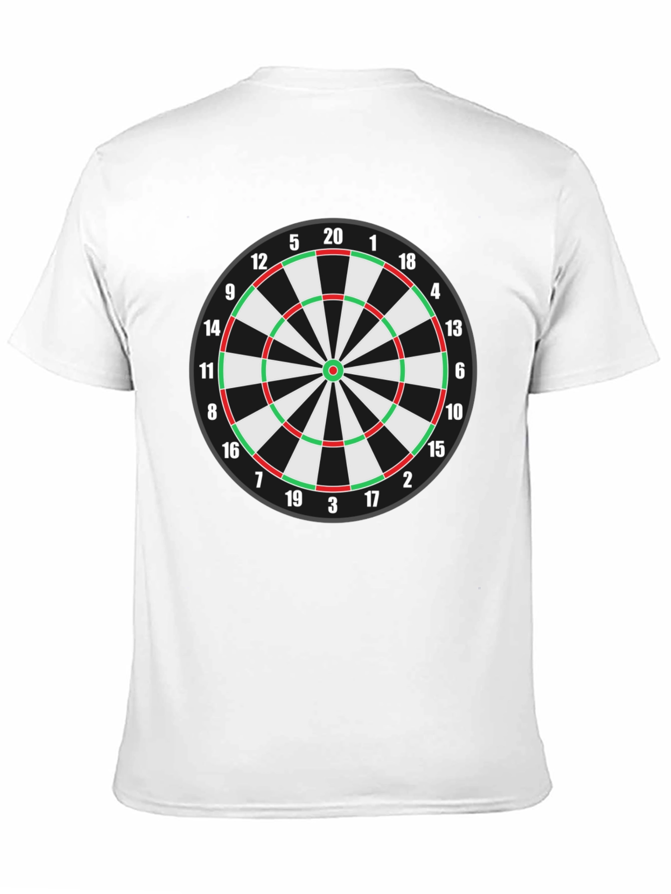 Show off your love for darts with this unique T-shirt! Crafted from a comfortable black cotton blend, this tee features a bold dartboard print on the front. The classic circular design includes numbered segments and concentric rings in a striking green, red, and white color scheme. Perfect for casual wear, game nights, or dart tournaments. Make a statement and score a bullseye with this stylish and eye-catching T-shirt!