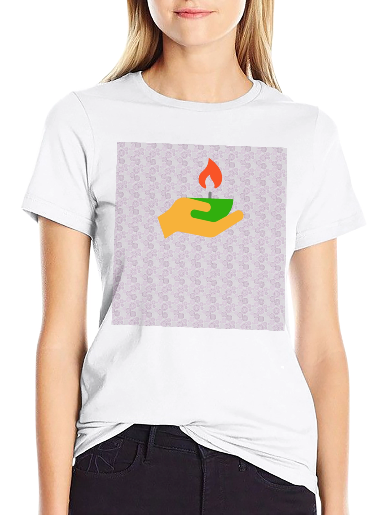 Celebrate the Festival of Lights with this stylish black t-shirt! The design features a vibrant graphic of a hand holding a diya (oil lamp) against a patterned background. Made from comfortable material, this tee is perfect for Diwali gatherings, cultural events, or everyday wear. Show your festive spirit in a fashionable way with this unique and eye-catching t-shirt. Add a touch of tradition to your wardrobe. This unique shirt makes a thoughtful gift, too. Order yours today!