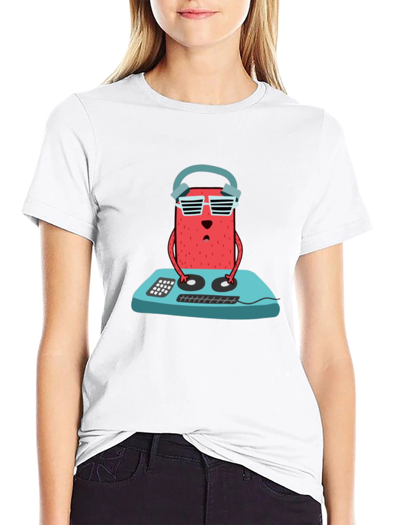 Show off your fun side with this eye-catching black t-shirt featuring a cartoon DJ bear design. The bear is depicted with headphones and pixel sunglasses, spinning tunes on a blue DJ table. The vibrant colors and playful artwork make this shirt a standout piece. Made from comfortable, breathable fabric, it's ideal for casual wear, music events, or just expressing your unique personality. A great conversation starter and a must-have for anyone who loves quirky, creative apparel. Upgrade your wardrobe with this fun and unique tee!