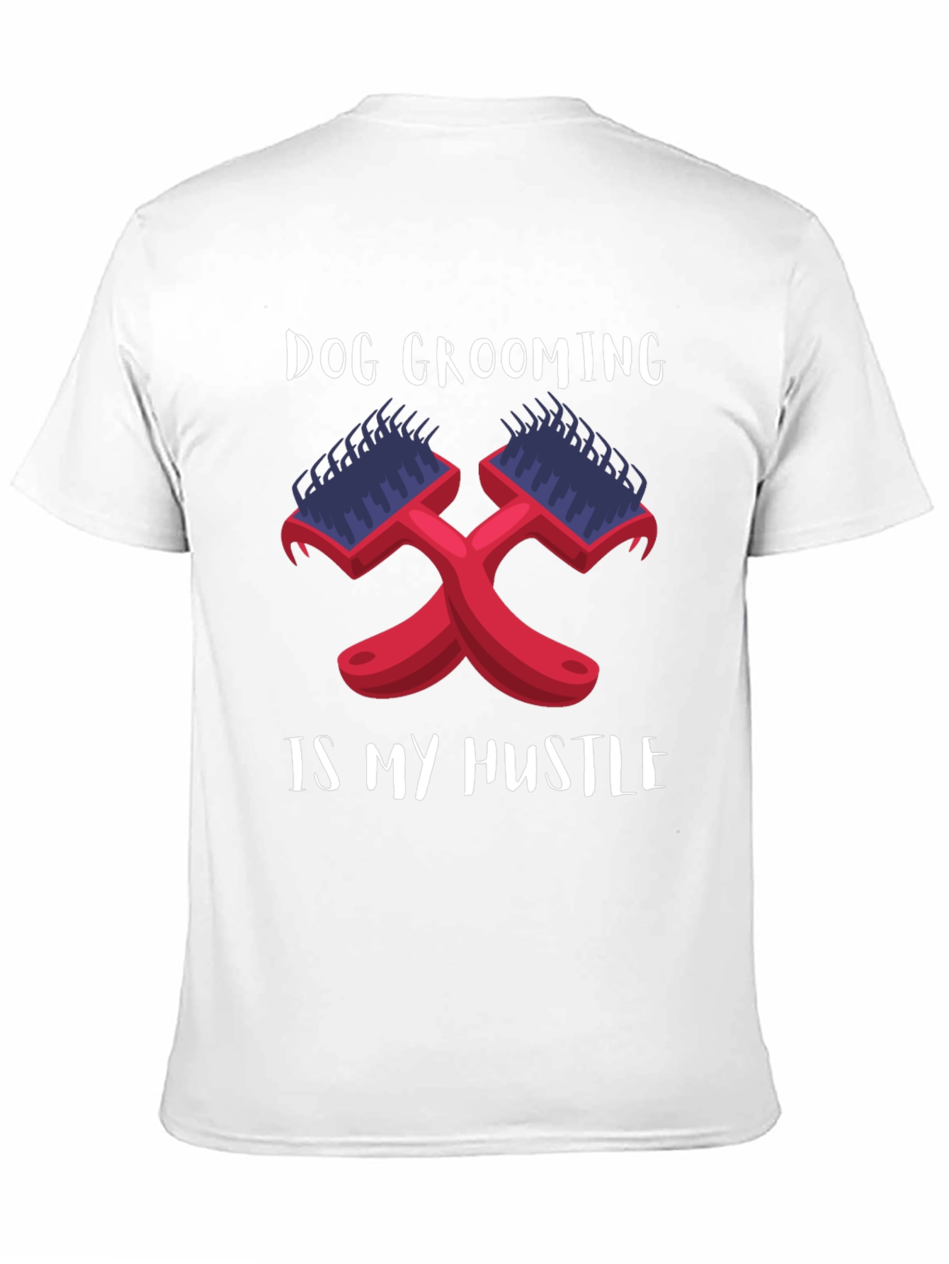 Show off your passion for pet care with this unique black t-shirt! Featuring the phrase "Dog Grooming IS MY HUSTLE" above and below a fun graphic of two crossed dog brushes. Perfect for groomers, pet lovers, or anyone who takes pride in their work. This tee is comfortable and stylish, ideal for everyday wear, work, or casual outings. Make a statement about your dedication to your craft with this eye-catching dog grooming t-shirt!