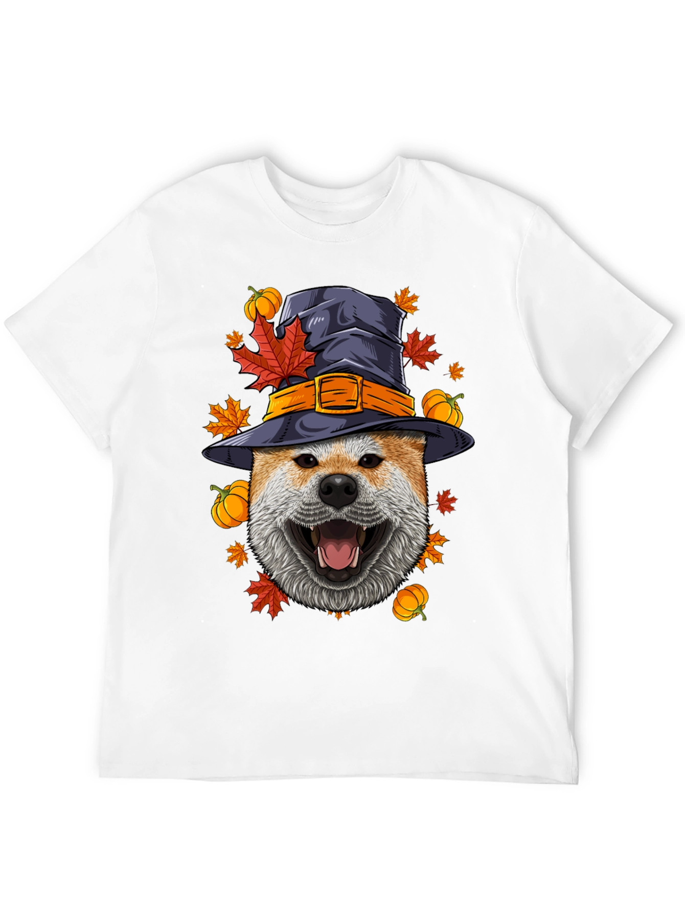 Get ready for Halloween with this fun and festive t-shirt! Featuring a dog wearing a witch hat surrounded by autumn leaves and pumpkins, this shirt is perfect for dog lovers and Halloween enthusiasts alike. Made from a soft, comfortable fabric, this tee is great for trick-or-treating, parties, or just showing off your spooky spirit. The vibrant colors and detailed design make this t-shirt a standout piece. It's a great conversation starter and a fun way to celebrate the season. Add a touch of Halloween cheer to your wardrobe with this unique and eye-catching shirt!